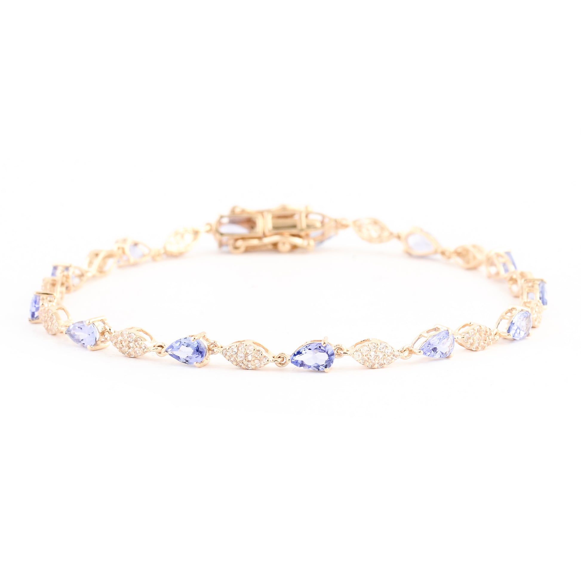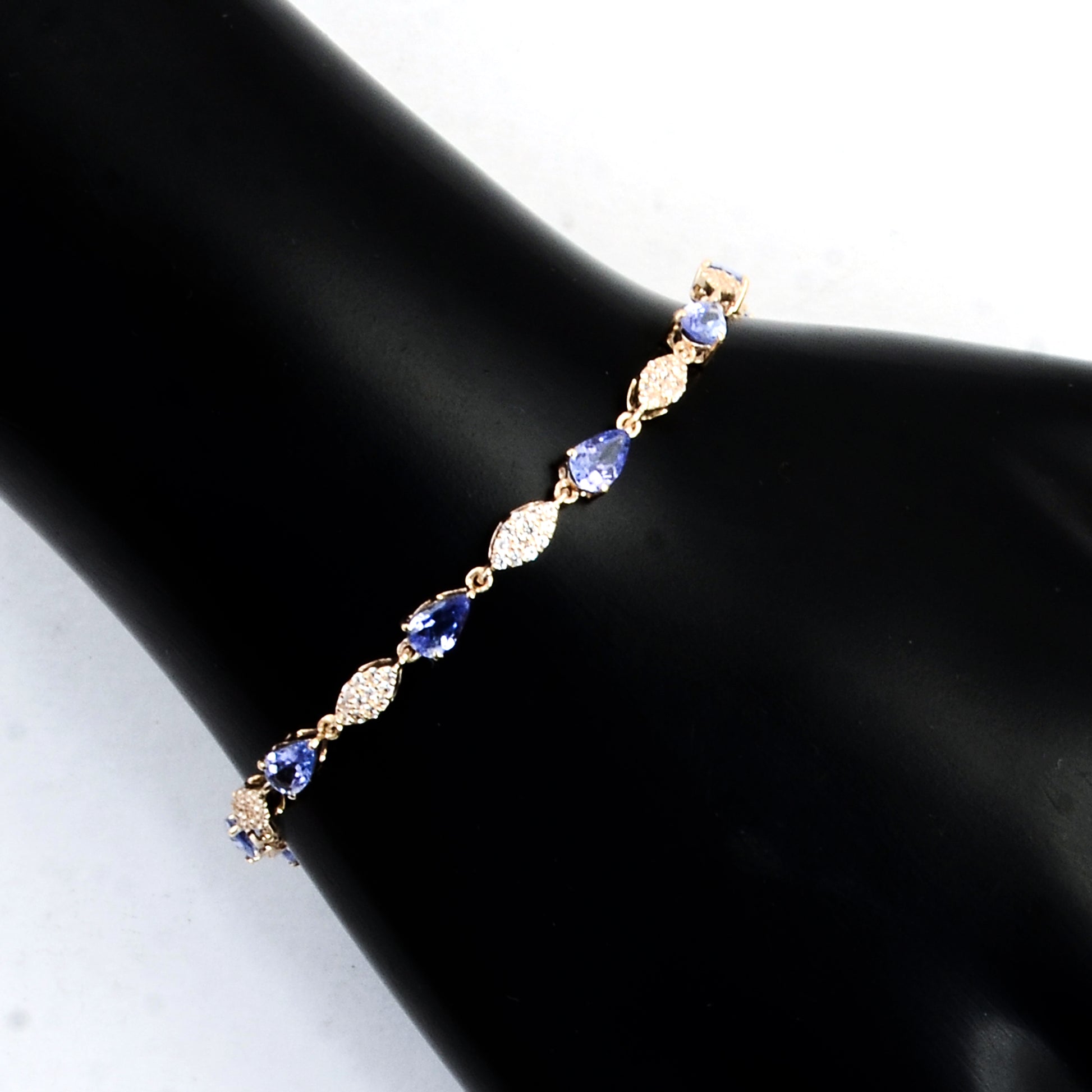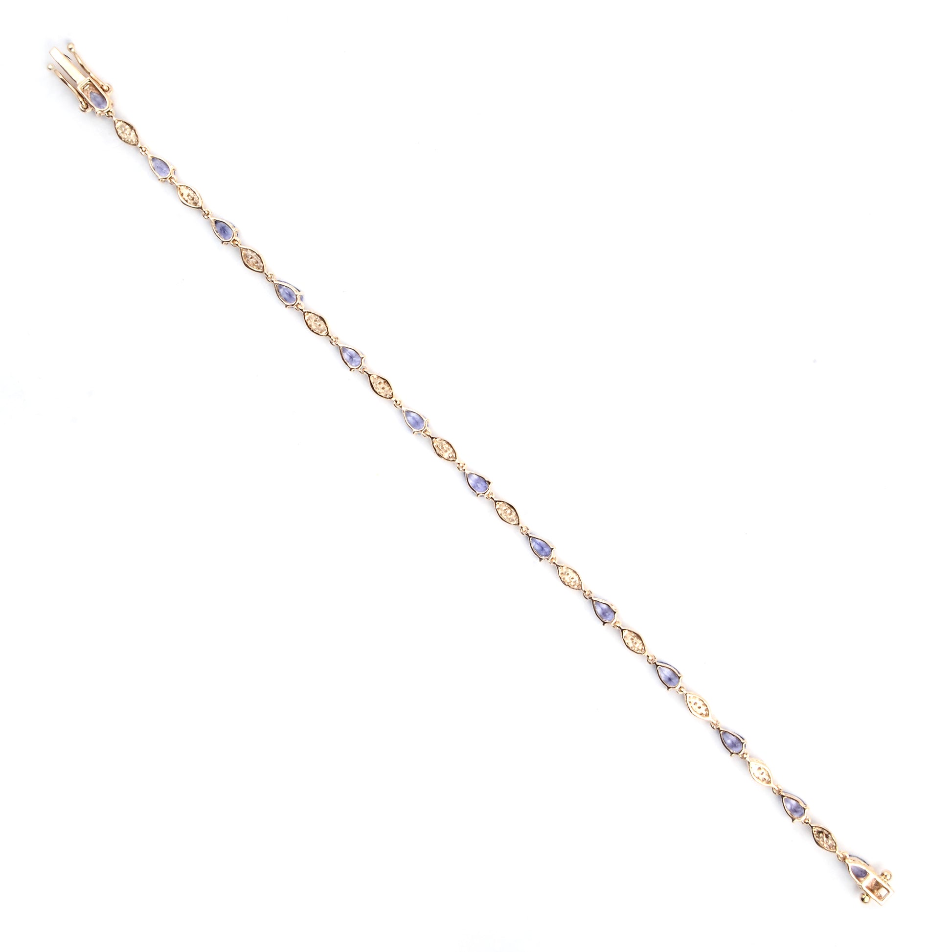 3.16 Ct Pear Tanzanite 14K Gold Bracelet