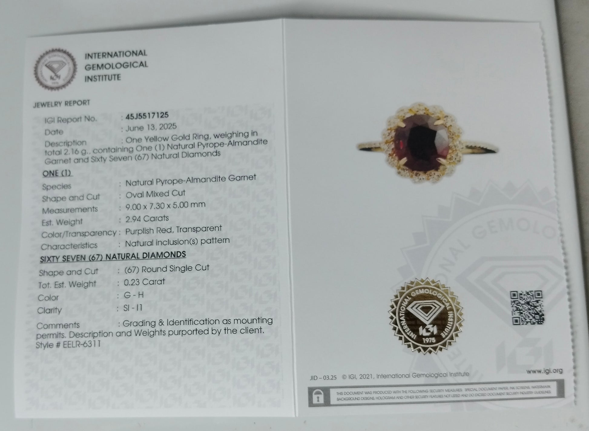 - Lab Name: International Gemological Institute (IGI)