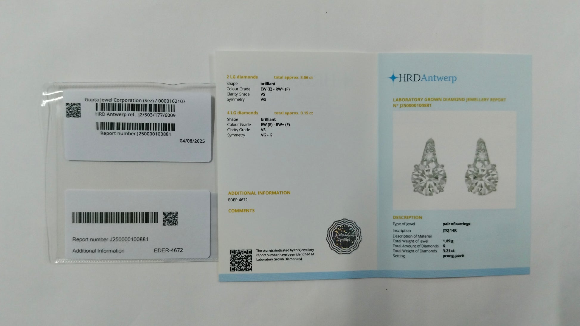 3.21-Carat Lab-Grown Diamond Round Cut Brilliant Earrings ? HRD Certified