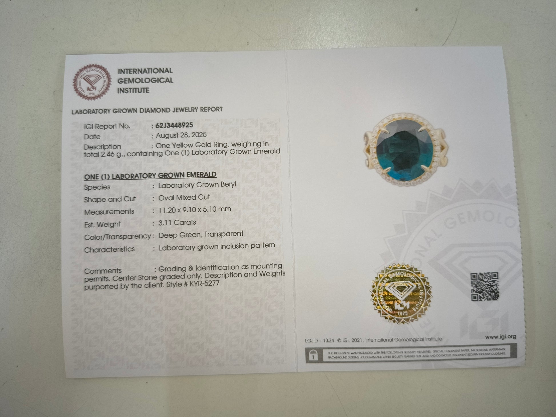3.21 Ct Oval Mixed Cut Lab Grown Emerald 14K Gold Ring