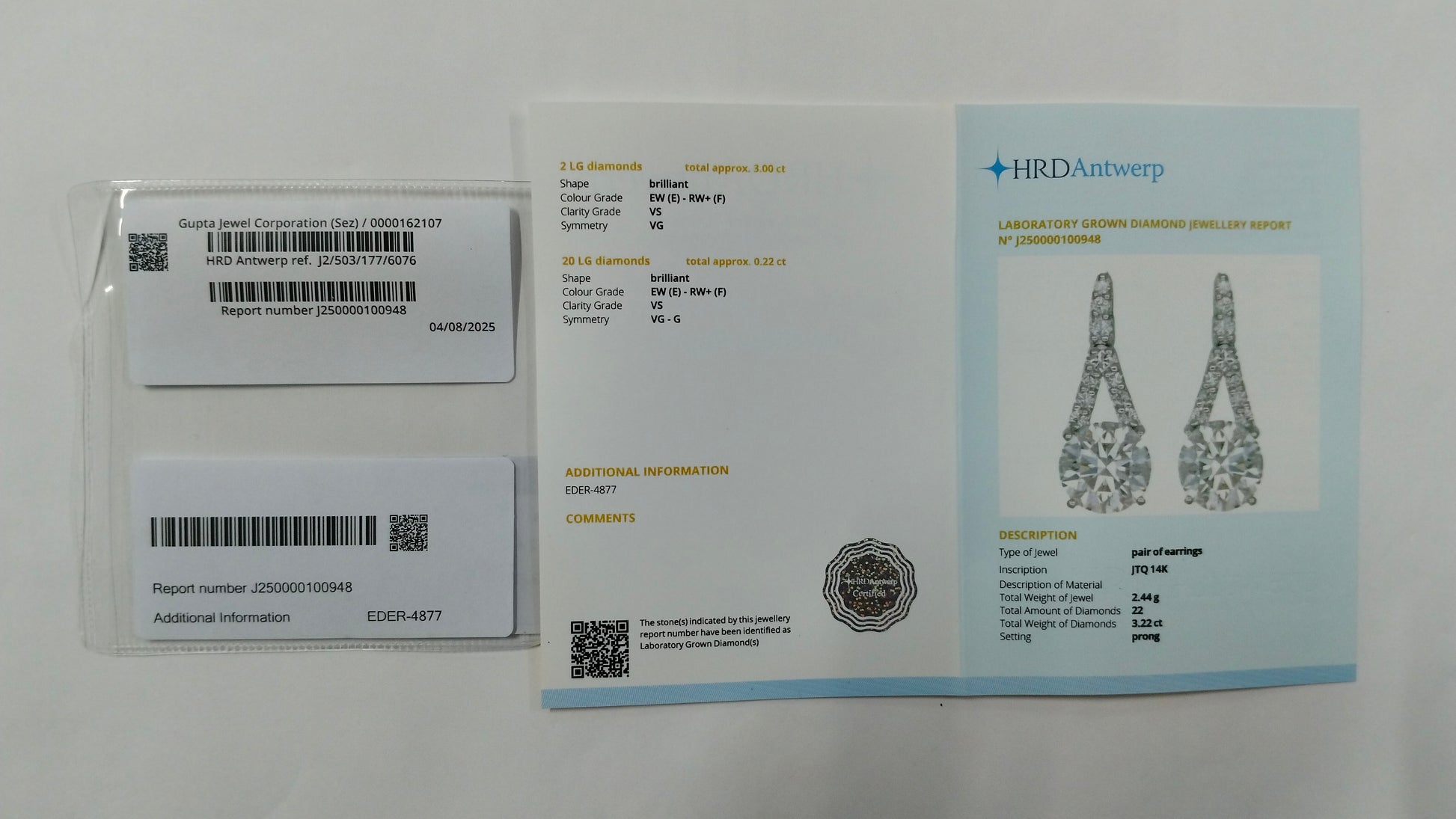 3.22-Carat Lab-Grown Diamond Round Cut Brilliant Earrings ? HRD Certified