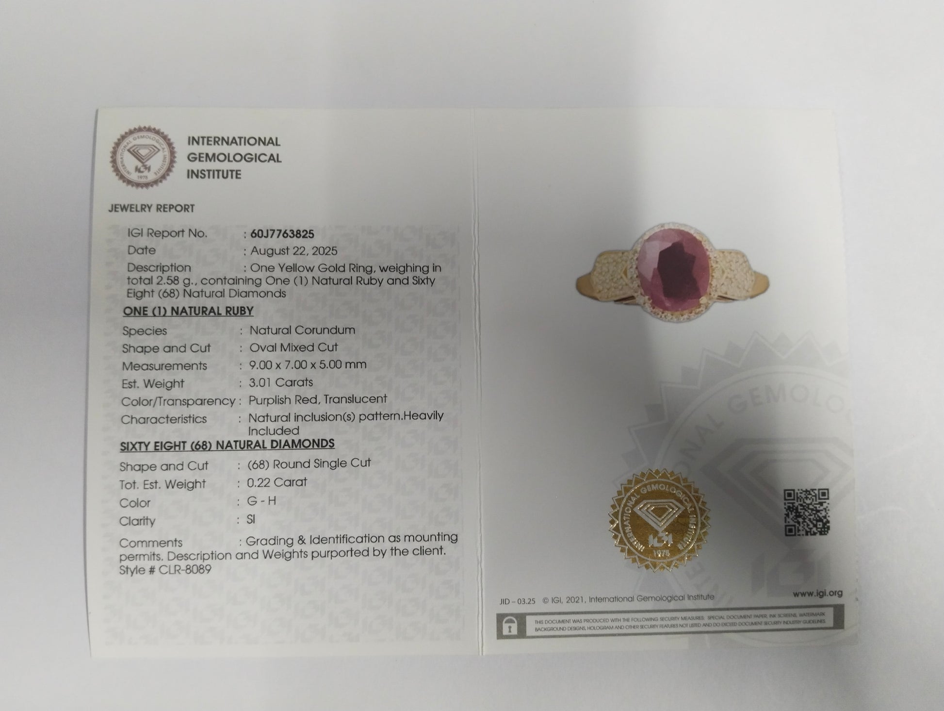 3.23 Total Carat Natural Corundum Ruby 14K Gold Ring