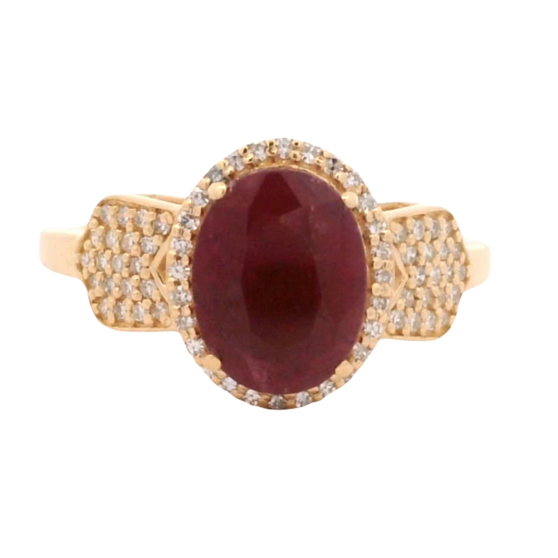 3.23 Ct Oval Mixed Cut Natural Corundum Ruby 14K Gold Ring