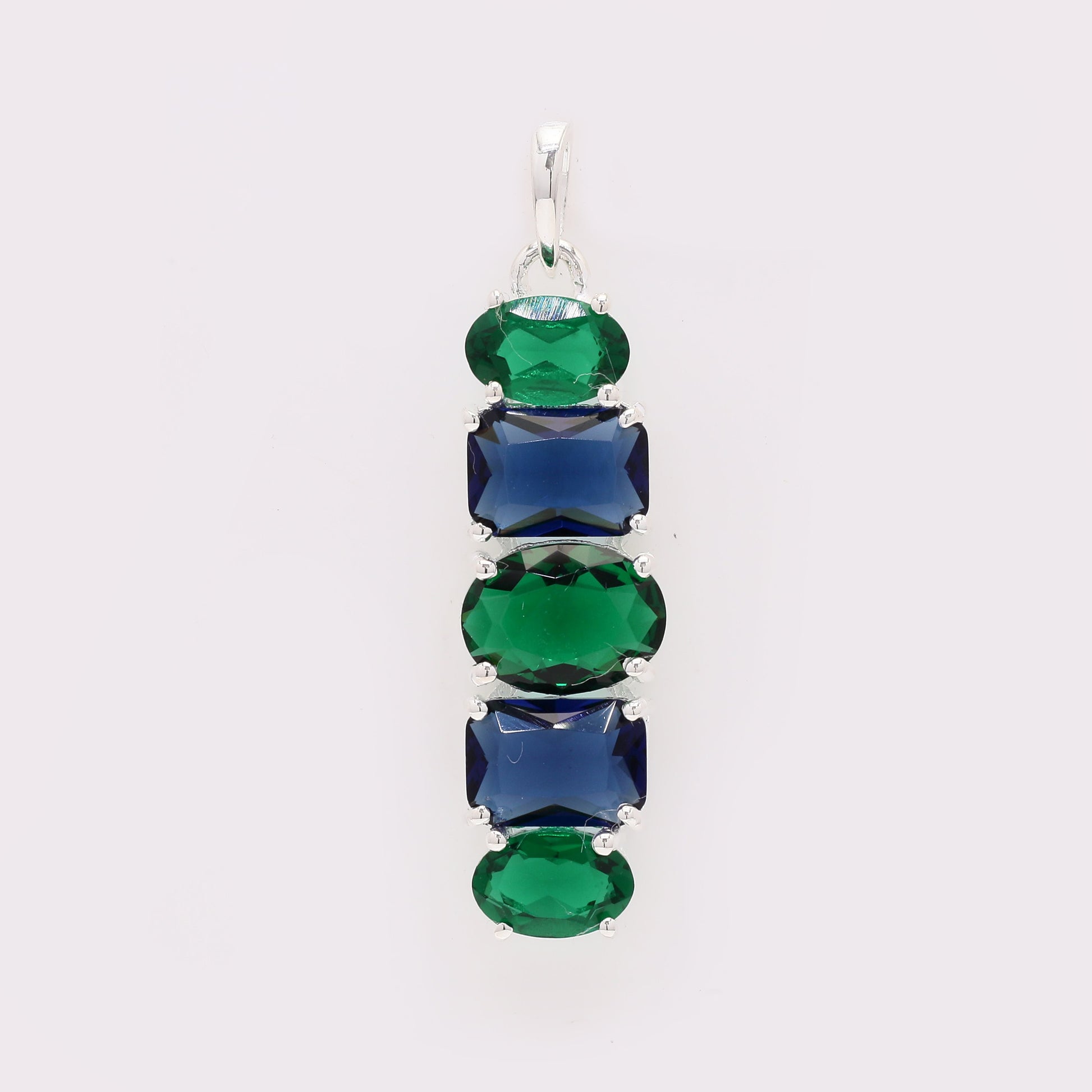 3.24 Ct Oval Created Emerald 925 Silver Pendant