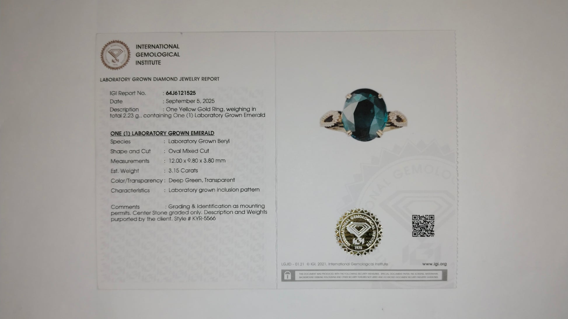 3.25 Ct Oval Mixed Cut Lab Grown Emerald 14K Gold Ring