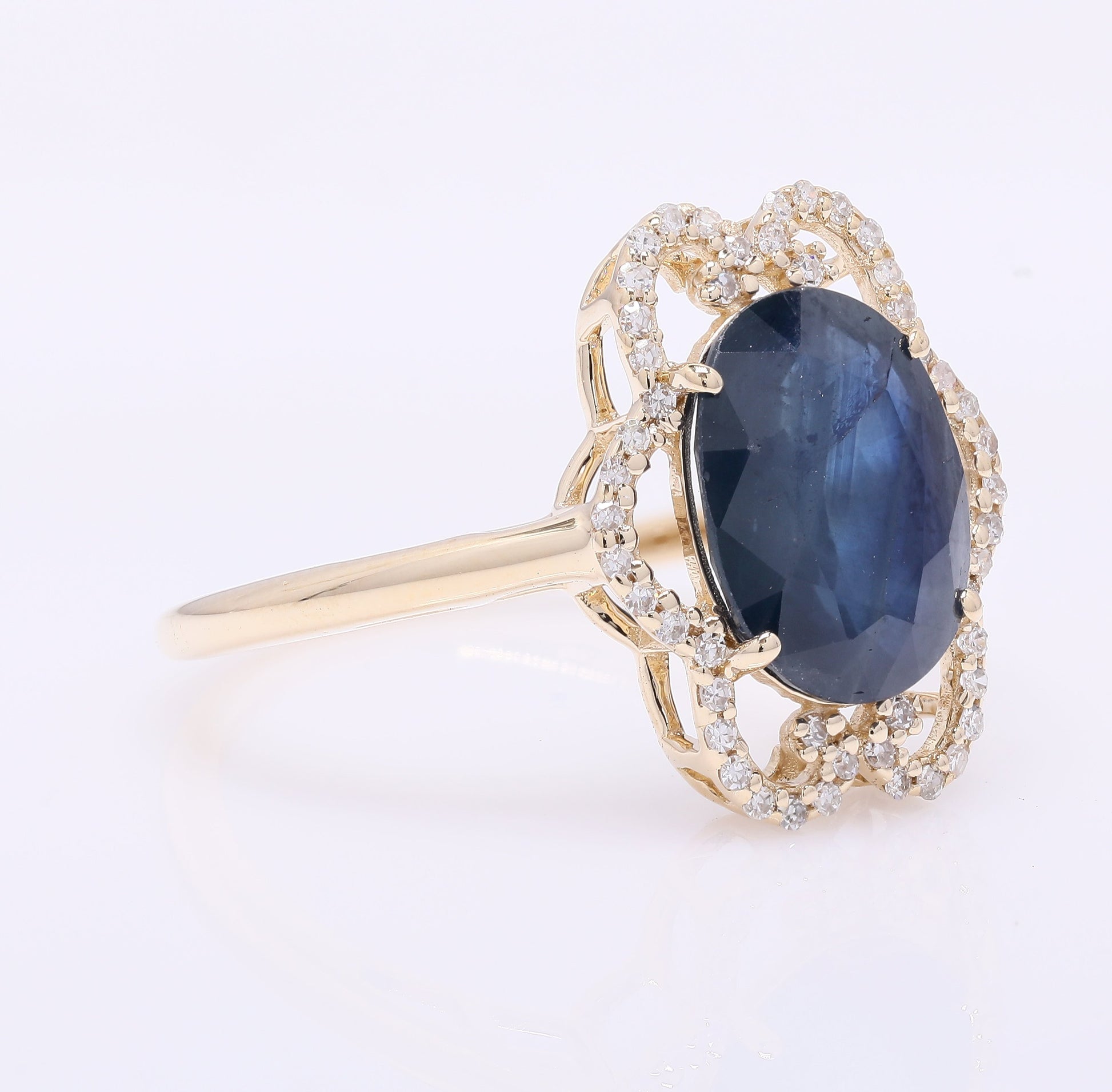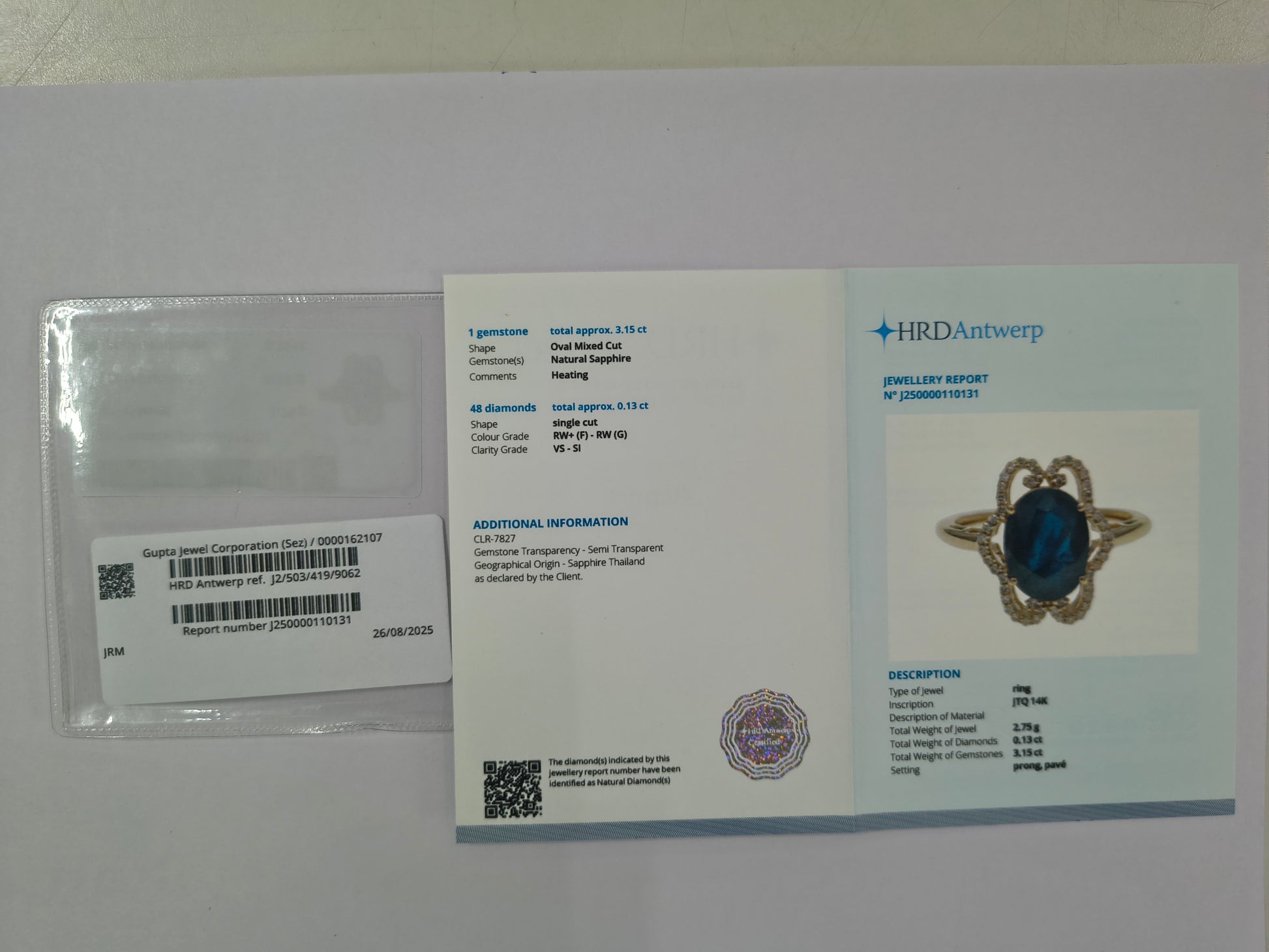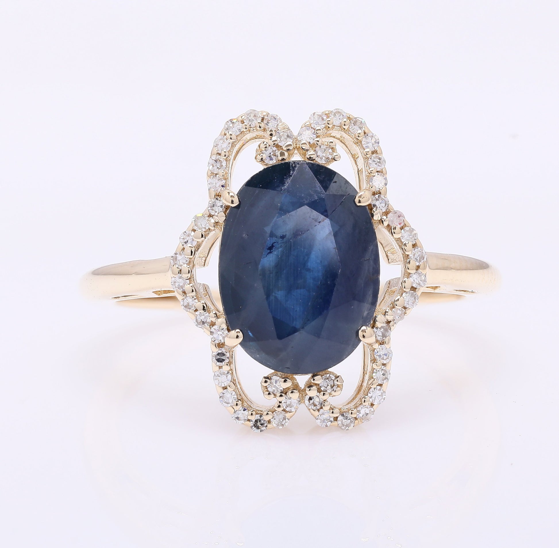 3.28 Ct Oval Mixed Cut Natural Sapphire 14K Gold Ring