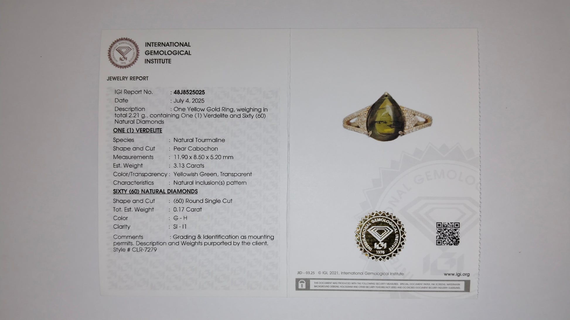 3.30 Total Carat Natural Tourmaline 14K Gold Ring