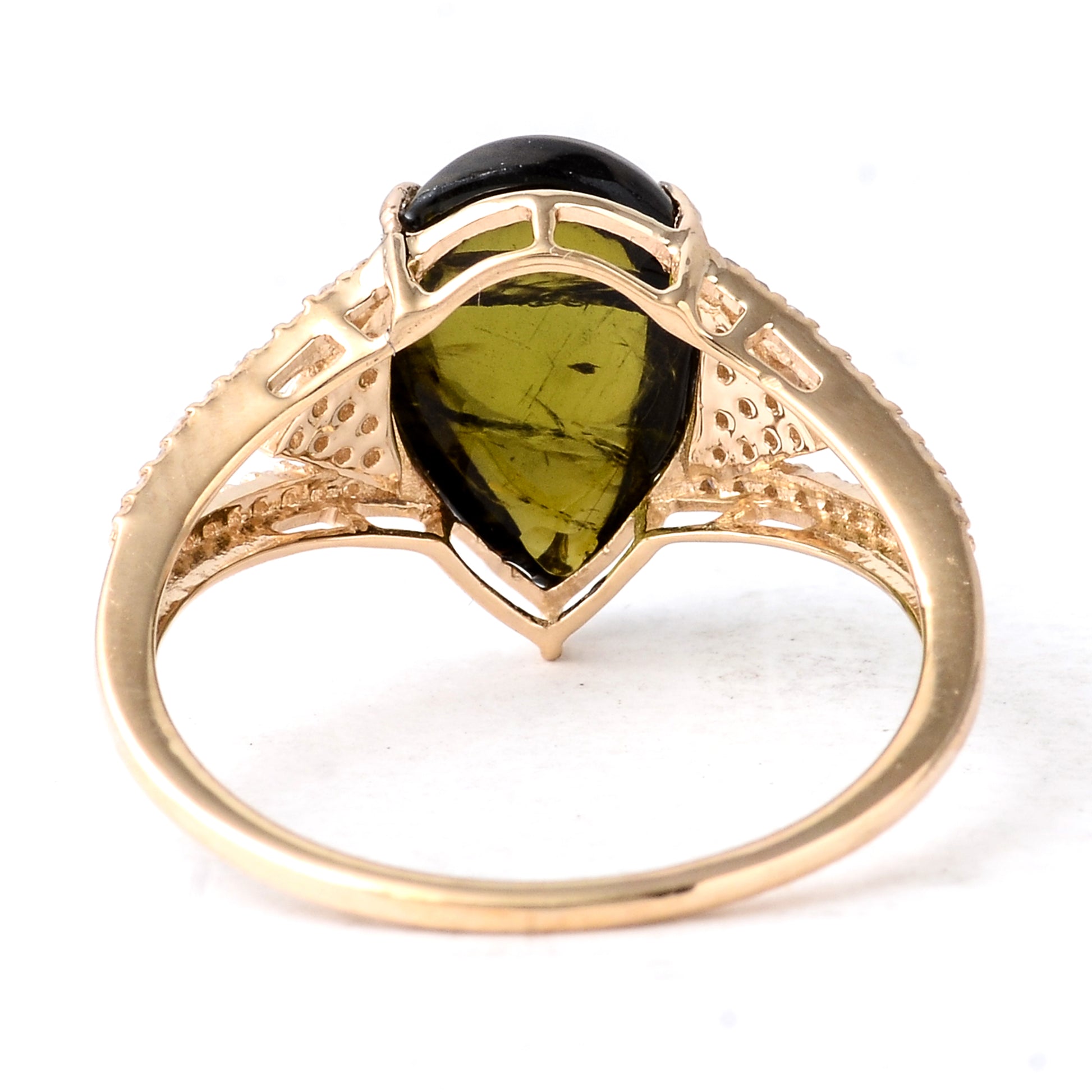 3.30 Ct Pear Cabochon Natural Tourmaline 14K Gold Ring