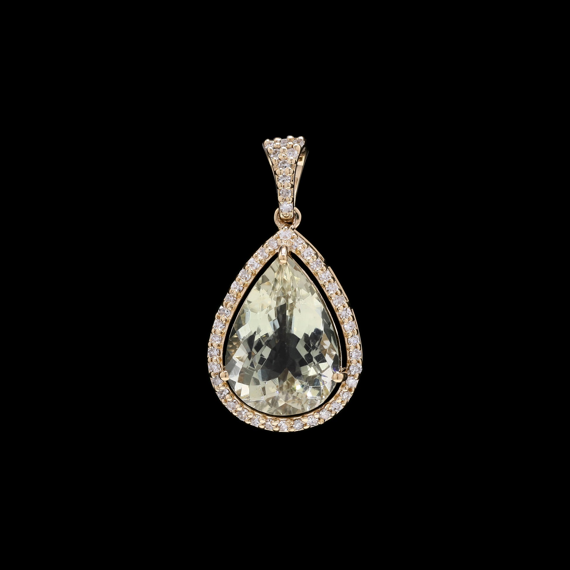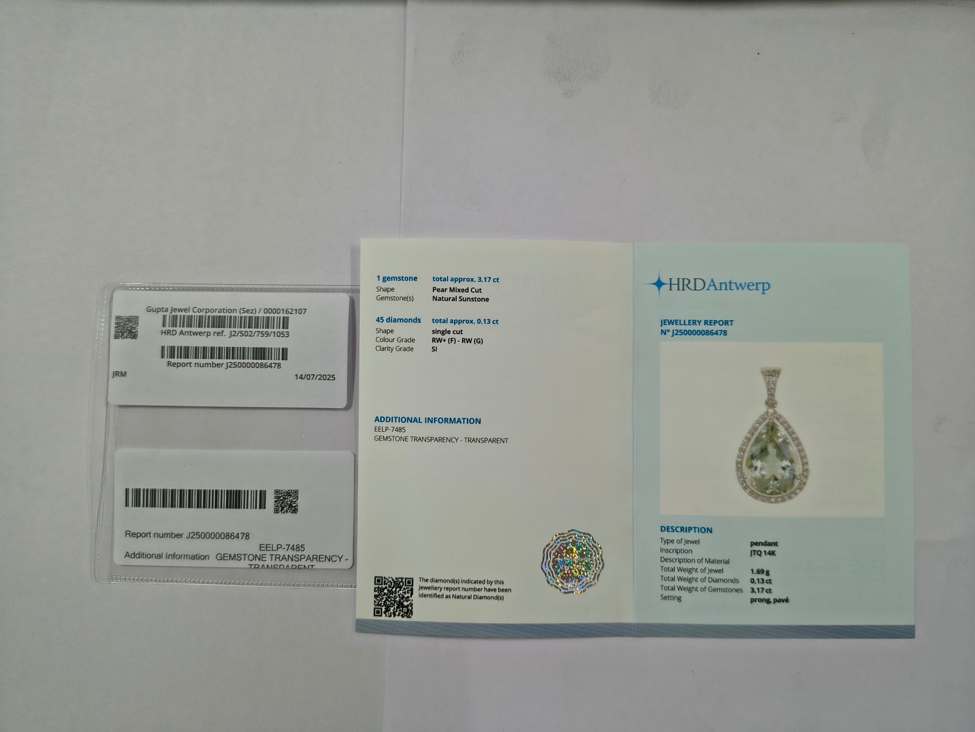 3.30 Ct Pear Mixed Cut Natural Sunstone 14K Gold Pendant
