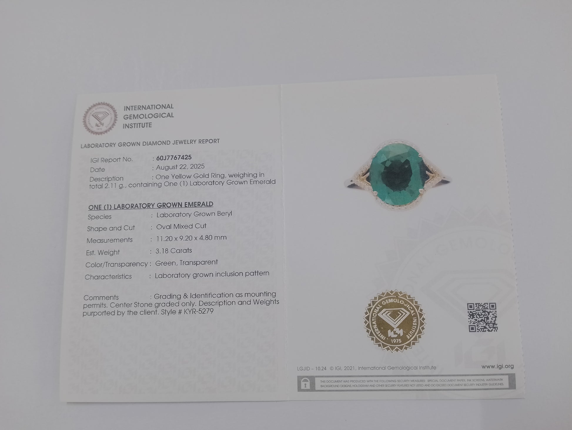 3.31 Ct Oval Mixed Cut Lab Grown Emerald 14K Gold Ring