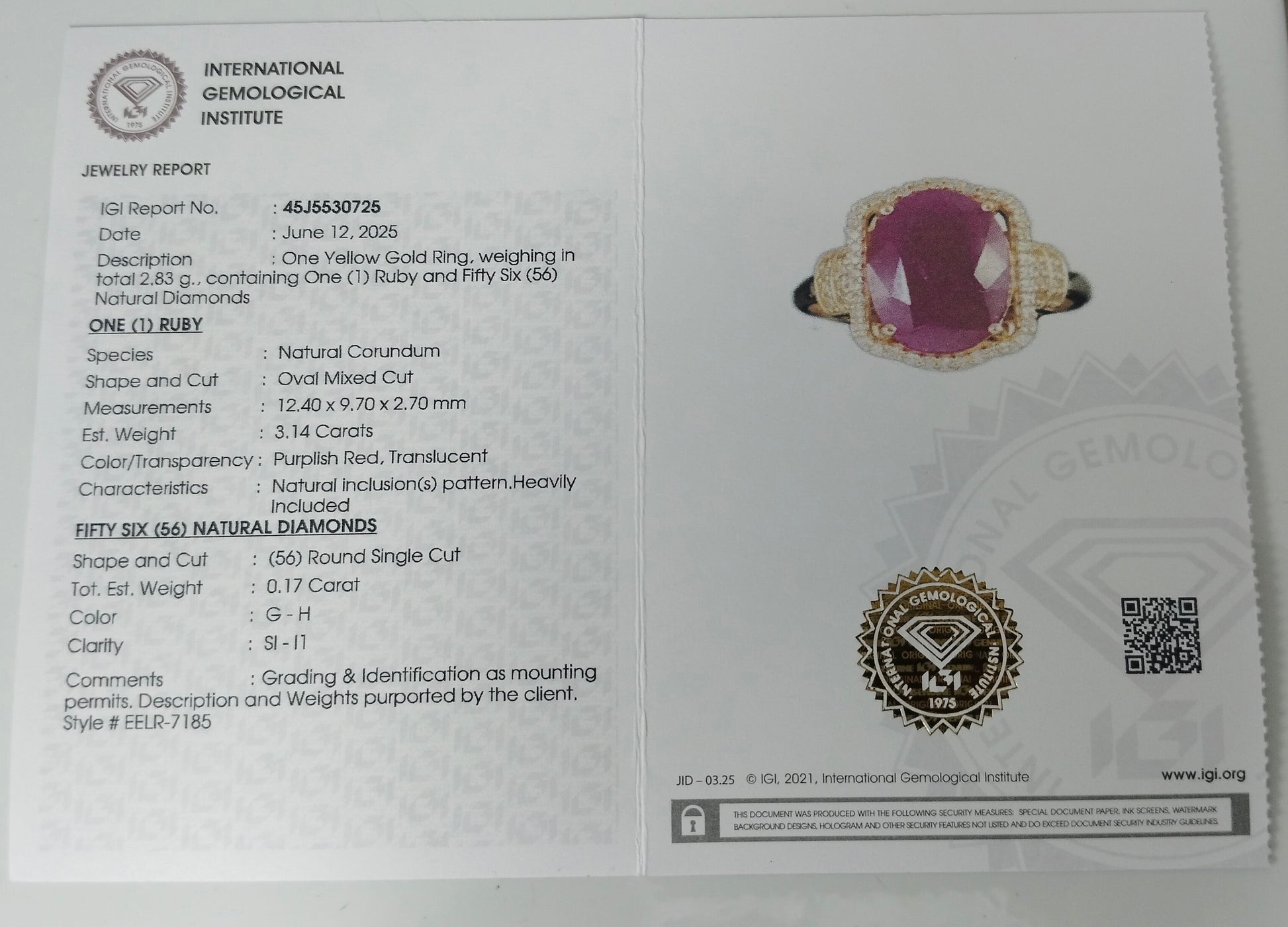 - Lab Name: International Gemological Institute (IGI)
