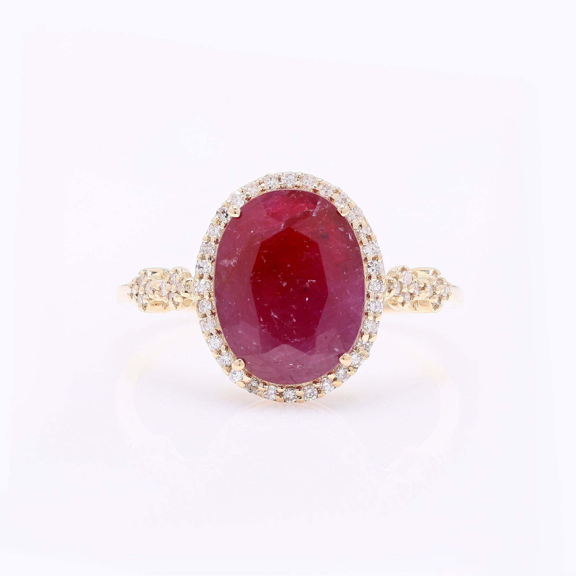 3.36 Ct Oval Mixed Cut Natural Ruby 14K Gold Ring