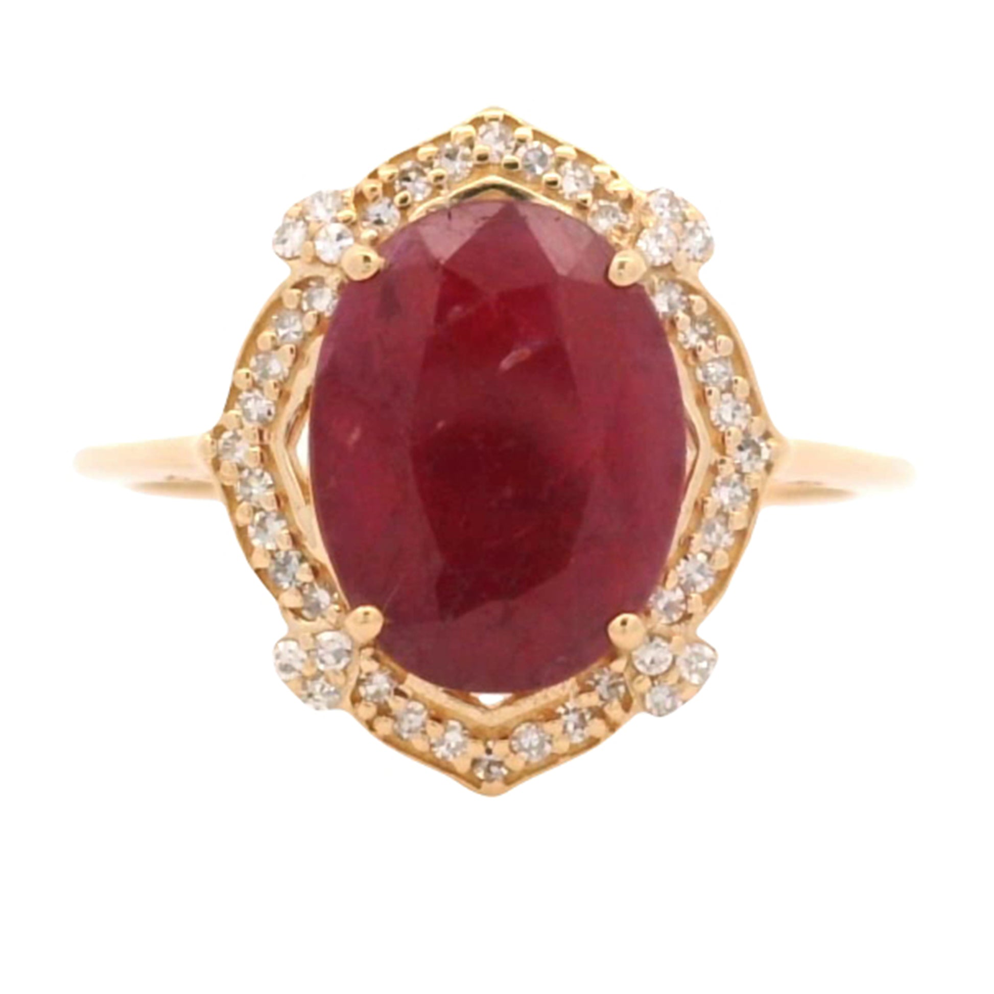 3.39 Ct Oval Mixed Cut Natural Corundum Ruby 14K Gold Ring