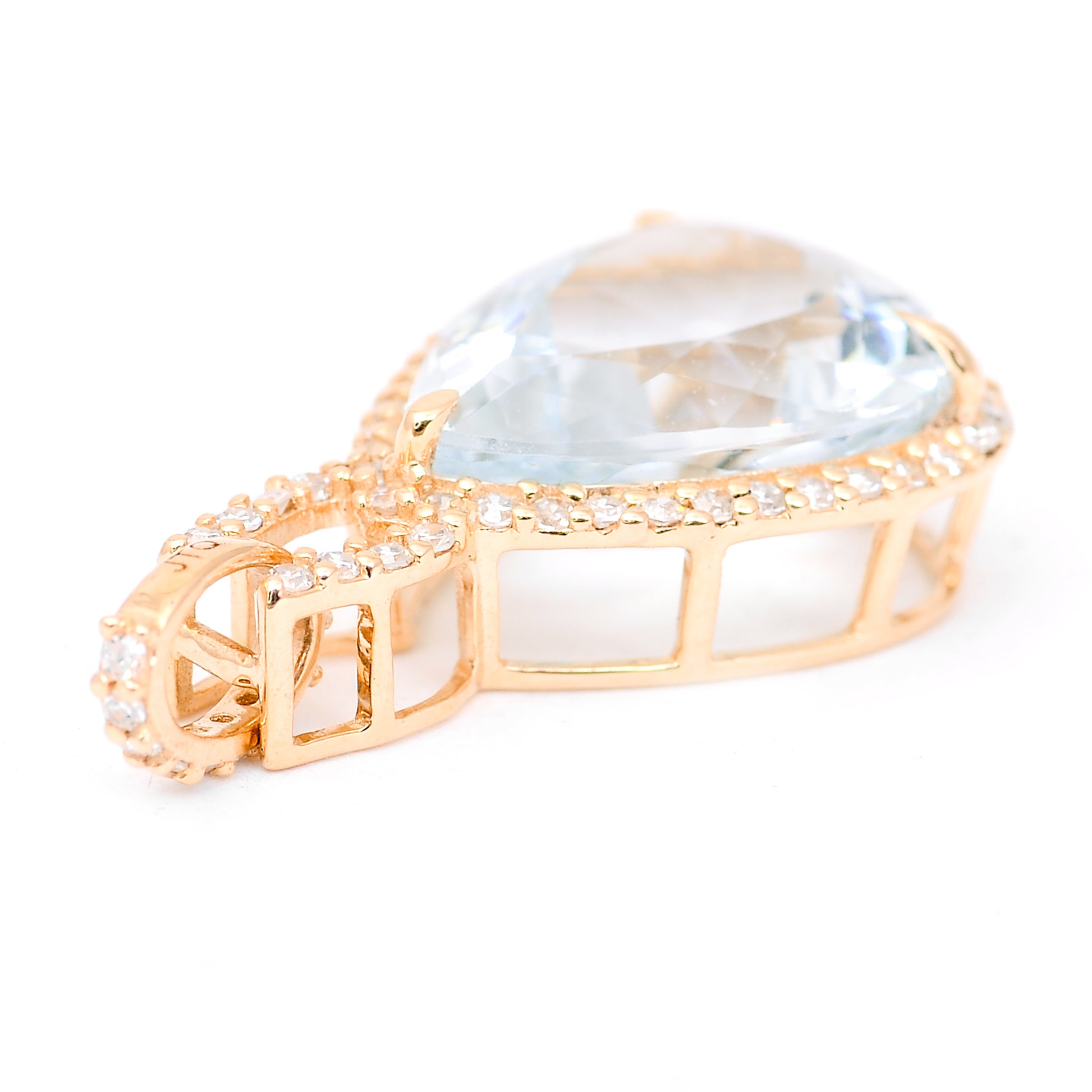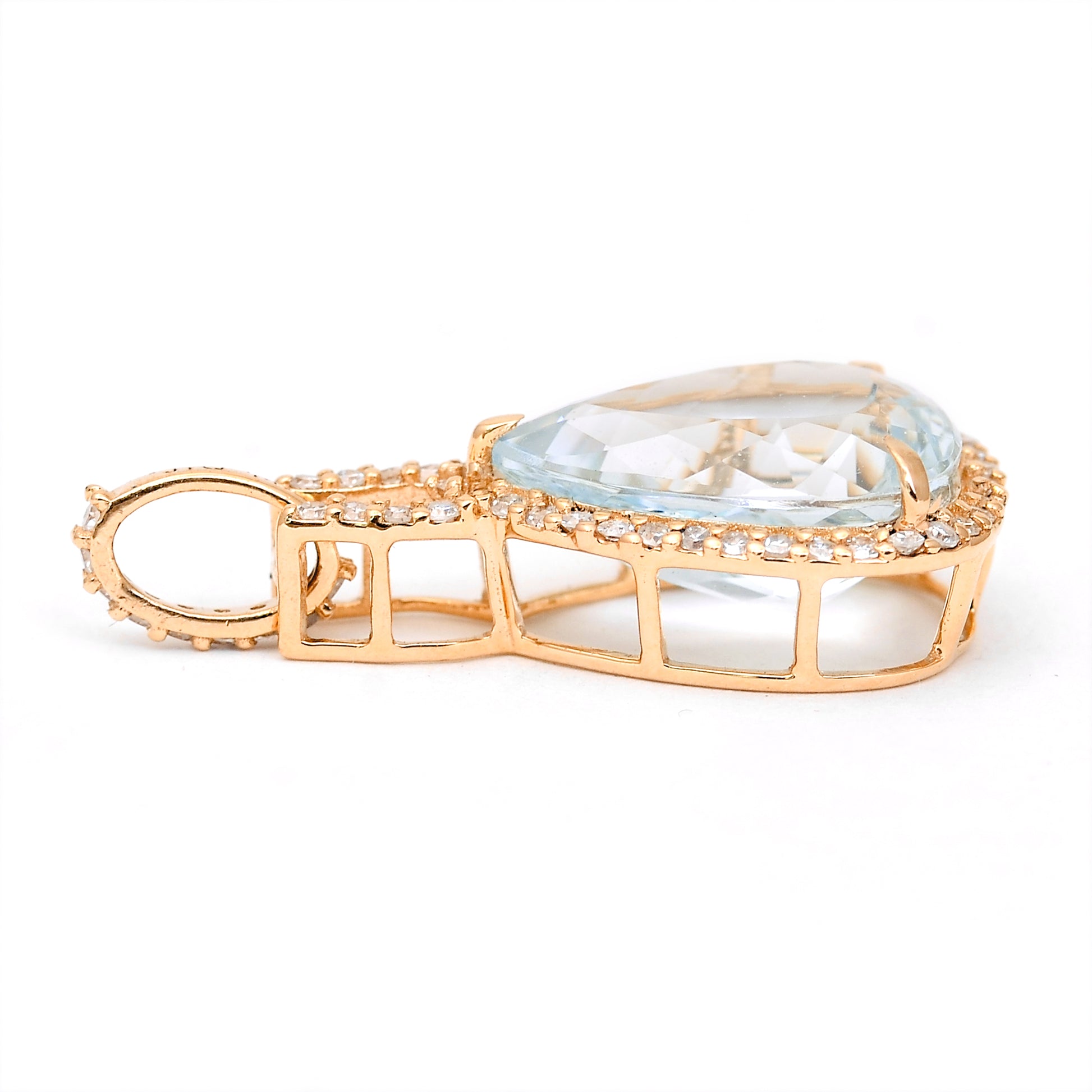 3.39 Ct Pear Mixed Cut Natural Aquamarine 14K Gold Pendant