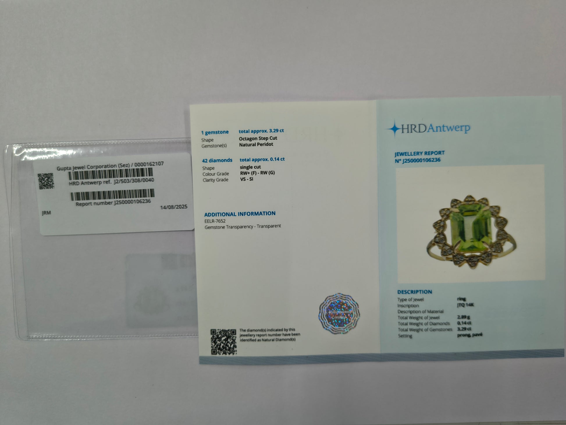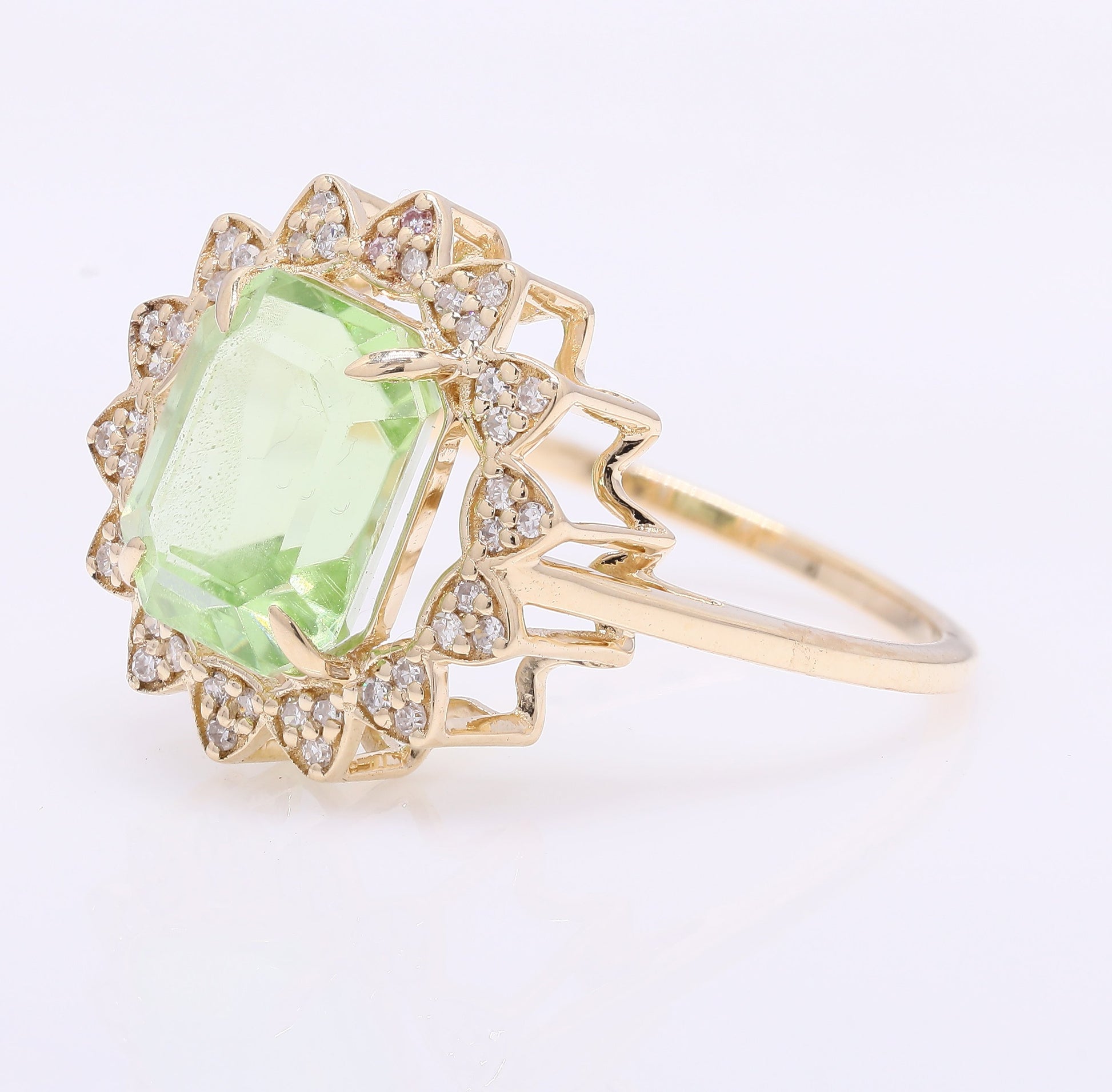 3.43 Ct Octagon Step Cut Natural Peridot 14K Gold Ring