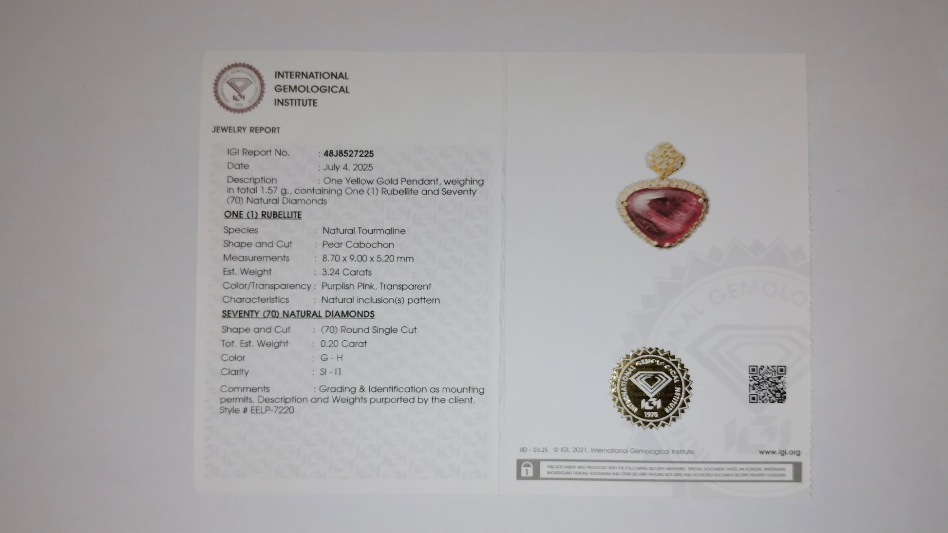 3.44 Total Carat Natural Tourmaline 14K Gold Pendant