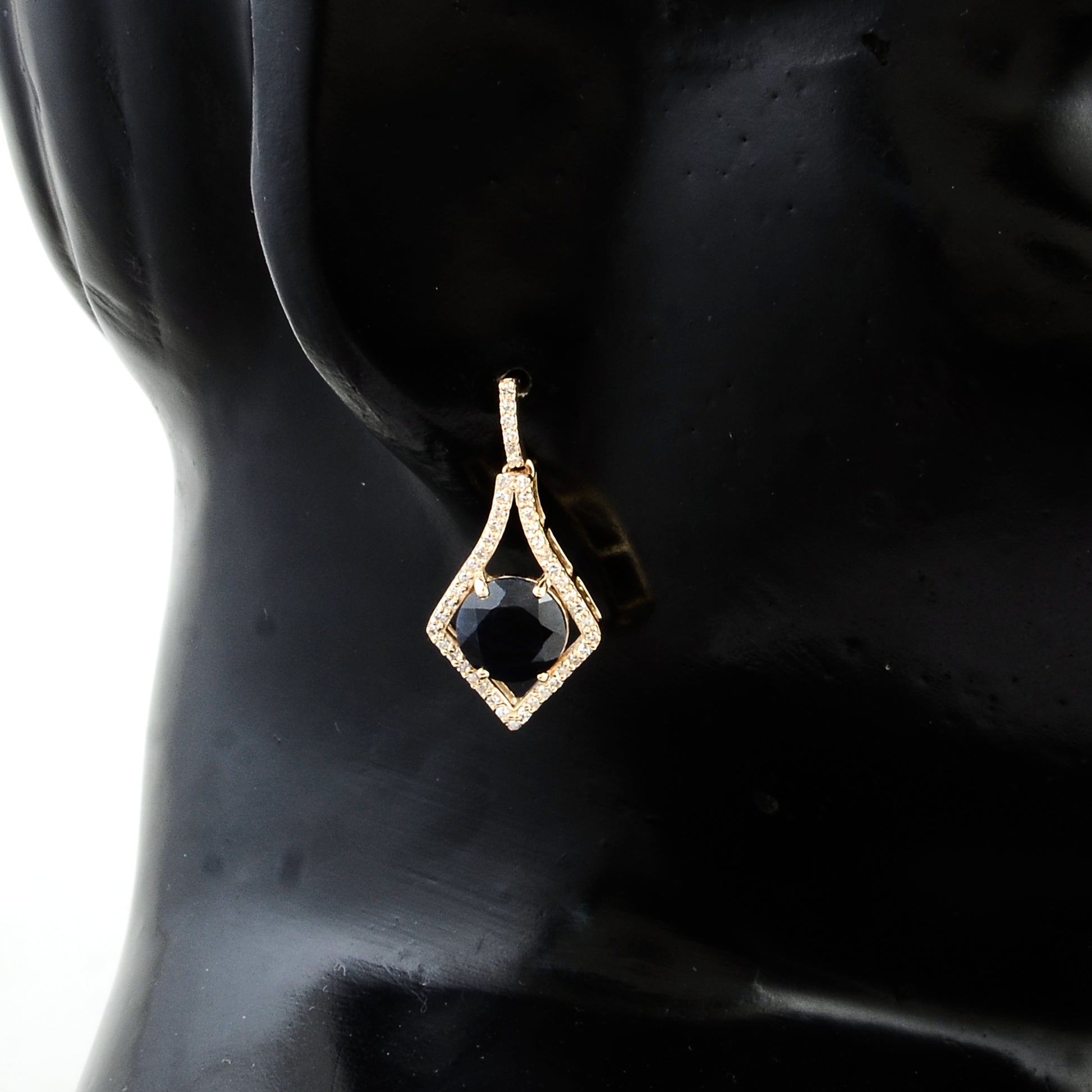 3.44 Total Carat Natural Corundum Sapphire 14K Gold Earrings
