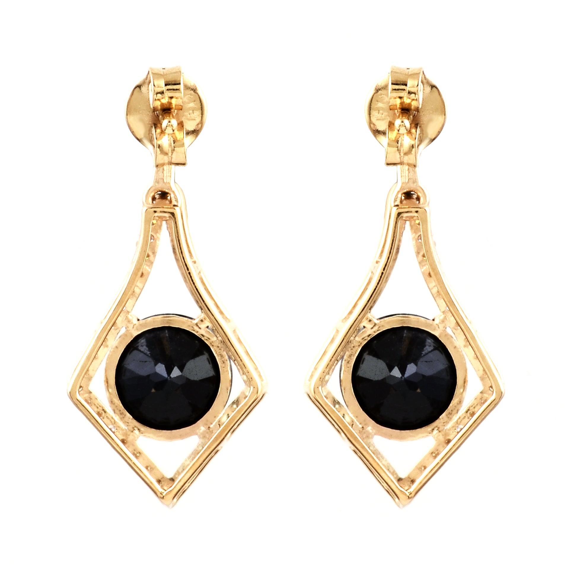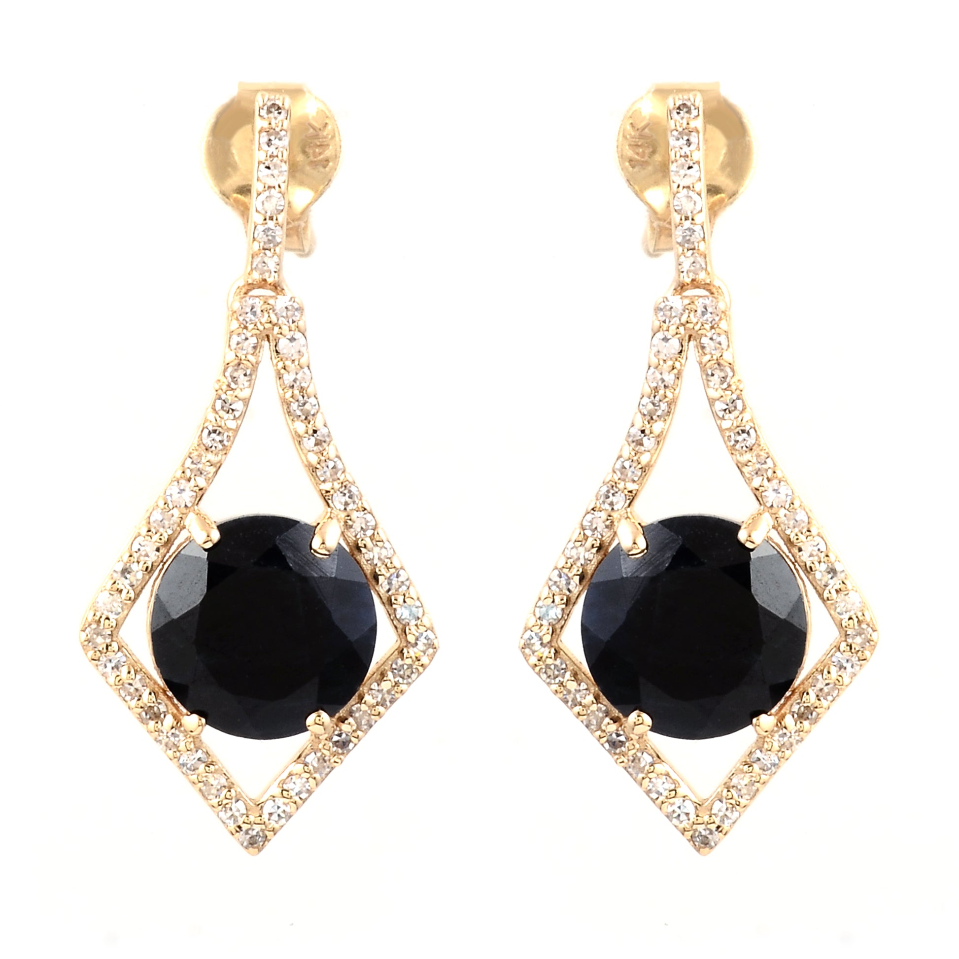 3.44 Ct Round Mixed Cut Natural Corundum Sapphire 14K Gold Earrings