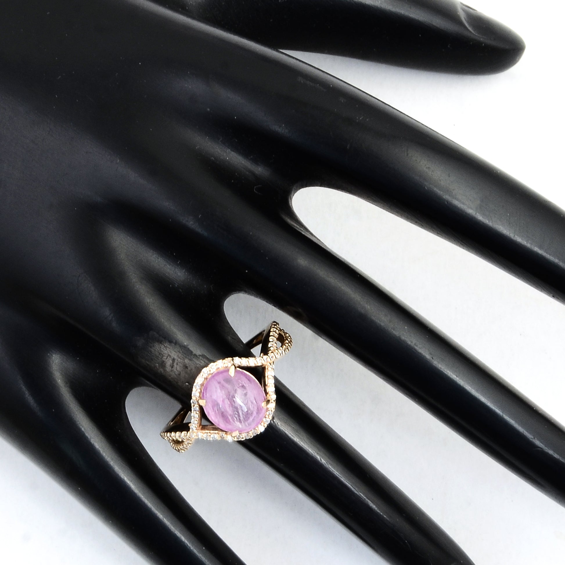 3.45 Ct Oval Cabochon Natural Corundum Pink Sapphire 14K Gold Ring