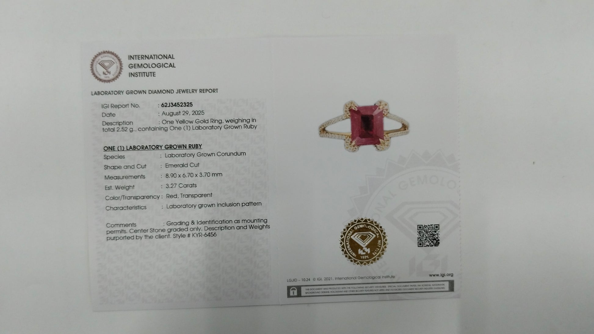 3.46 Ct Emerald Cut Lab Grown Ruby 14K Gold Ring