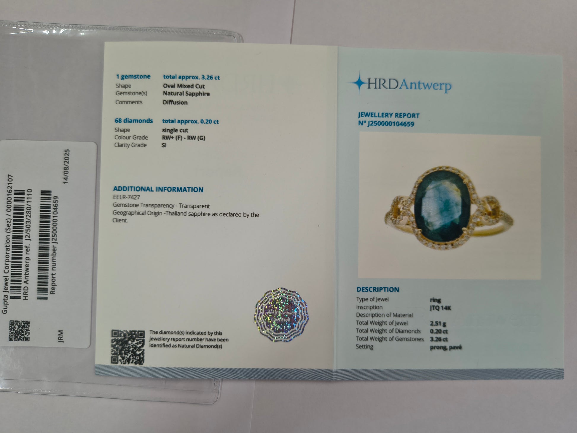 - Certificate Number J250000104659