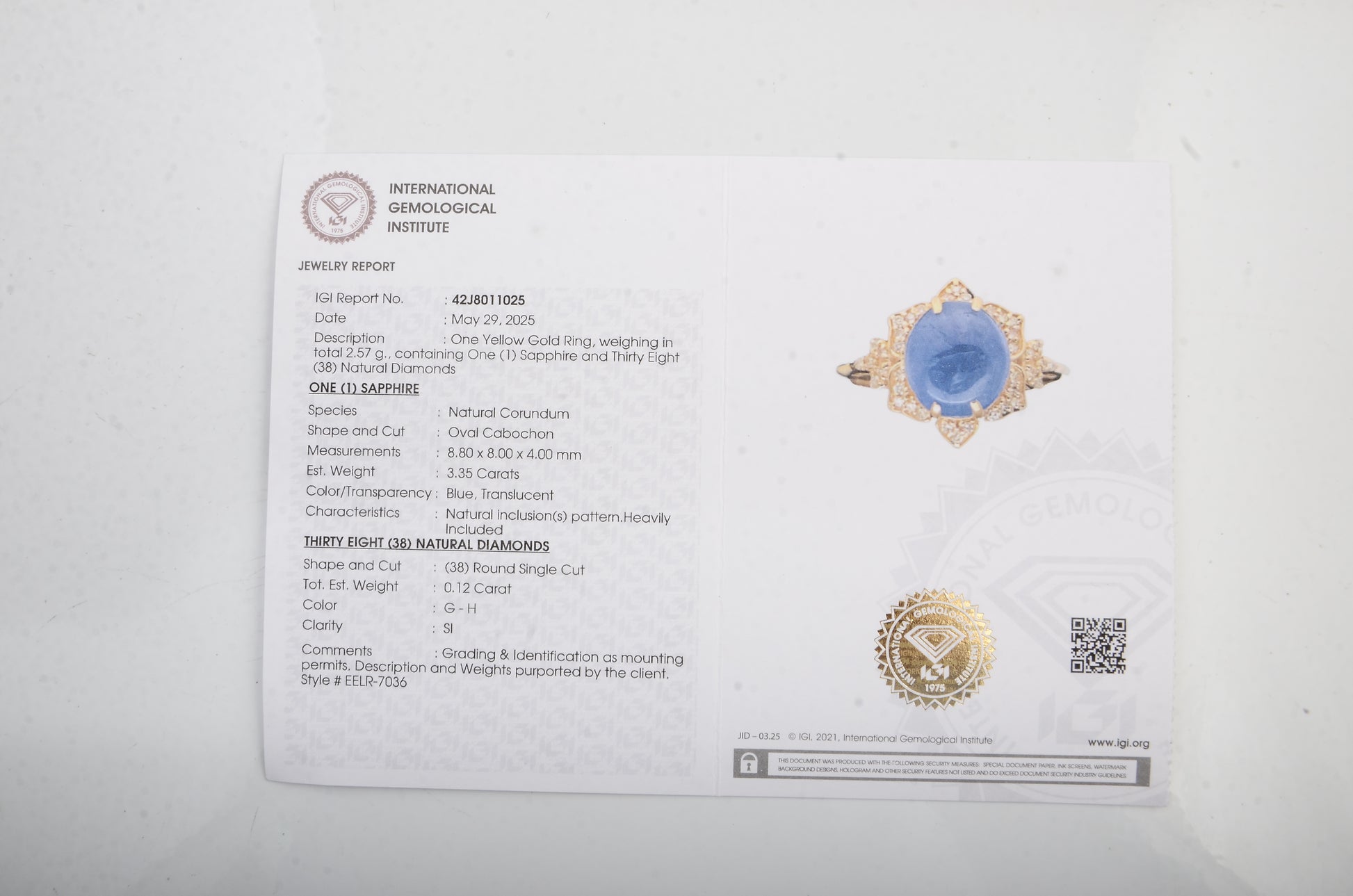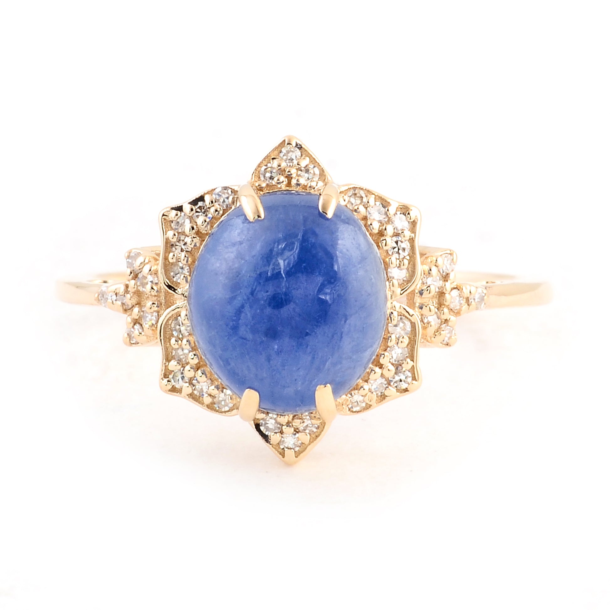 3.47 Ct Oval Cabochon Natural Corunum Sapphire 14K Gold Ring
