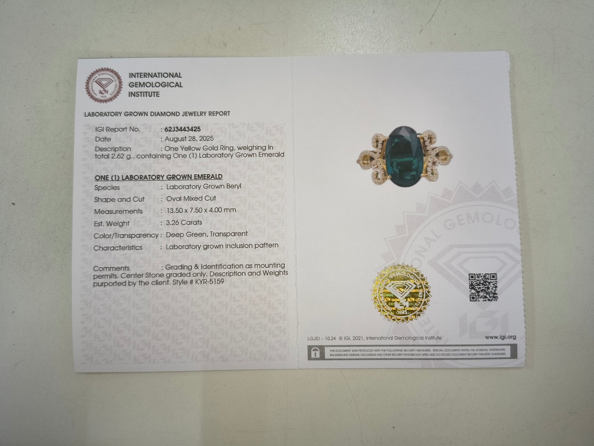 - Lab Name: International Gemological Institute (IGI)