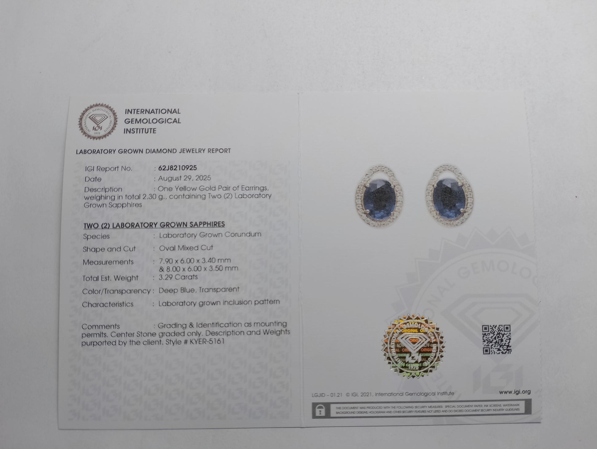 3.49 Total Carat Lab Grown Sapphire 14K Gold Earrings