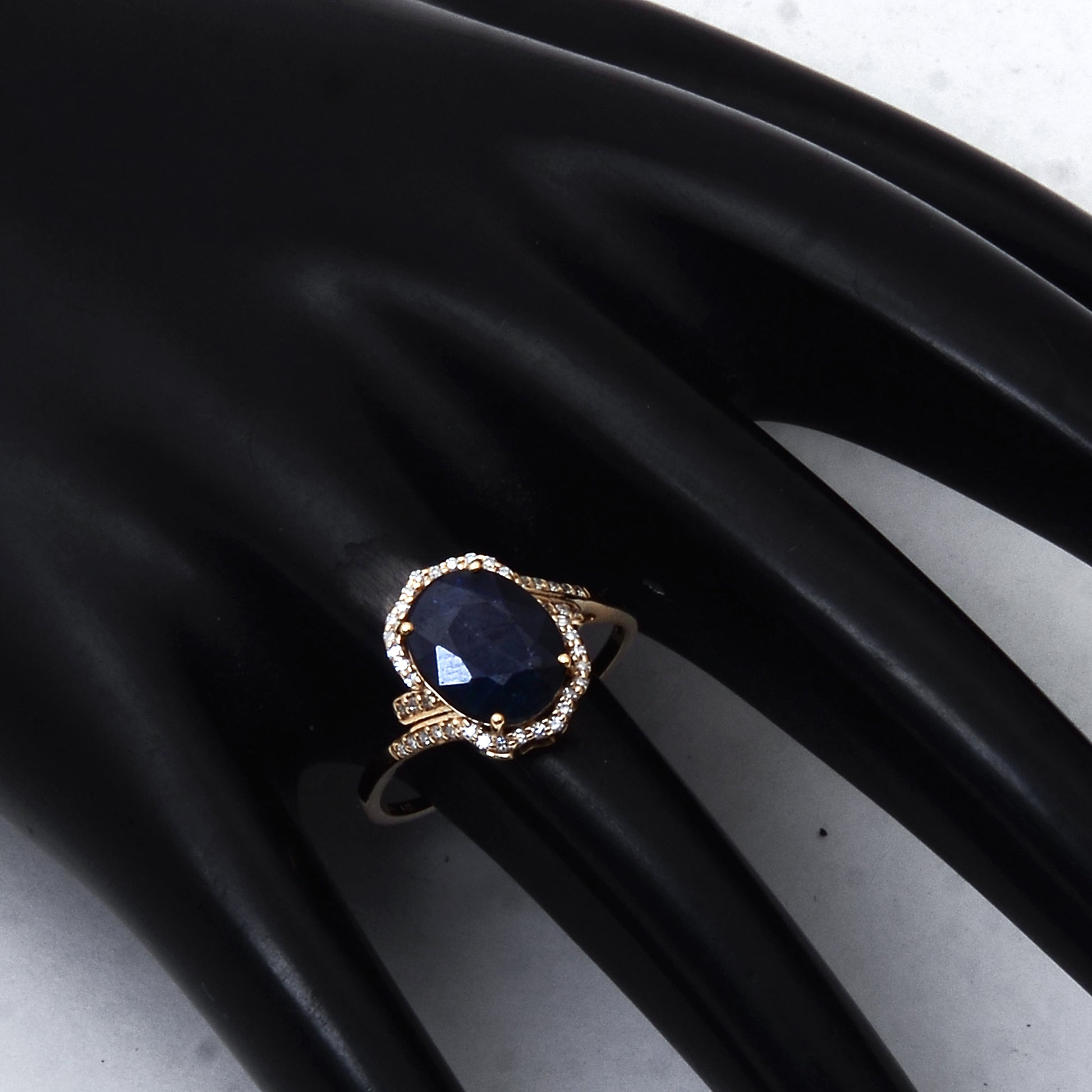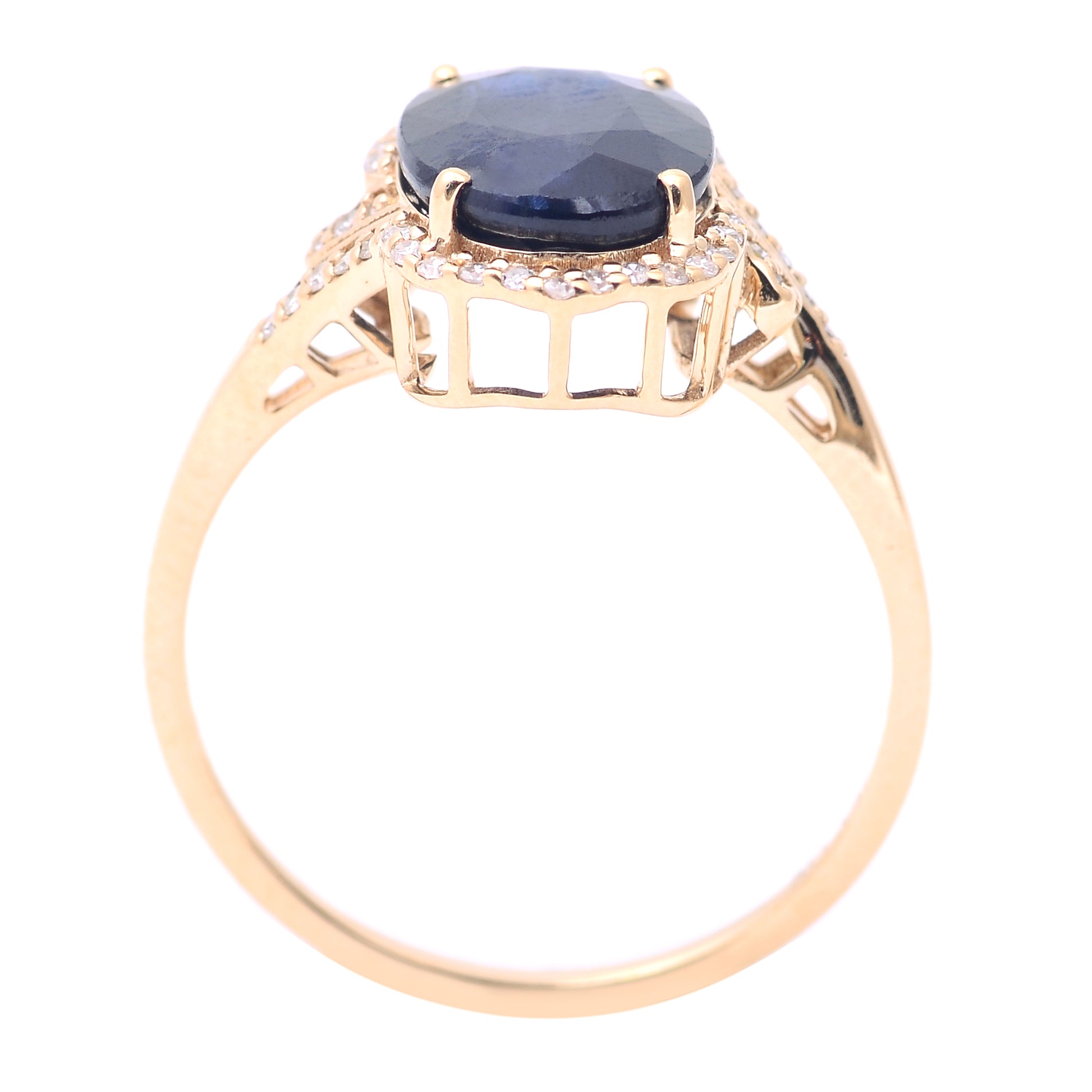 3.49 Ct Oval Mixed Cut Natural Sapphire 14K Gold Ring