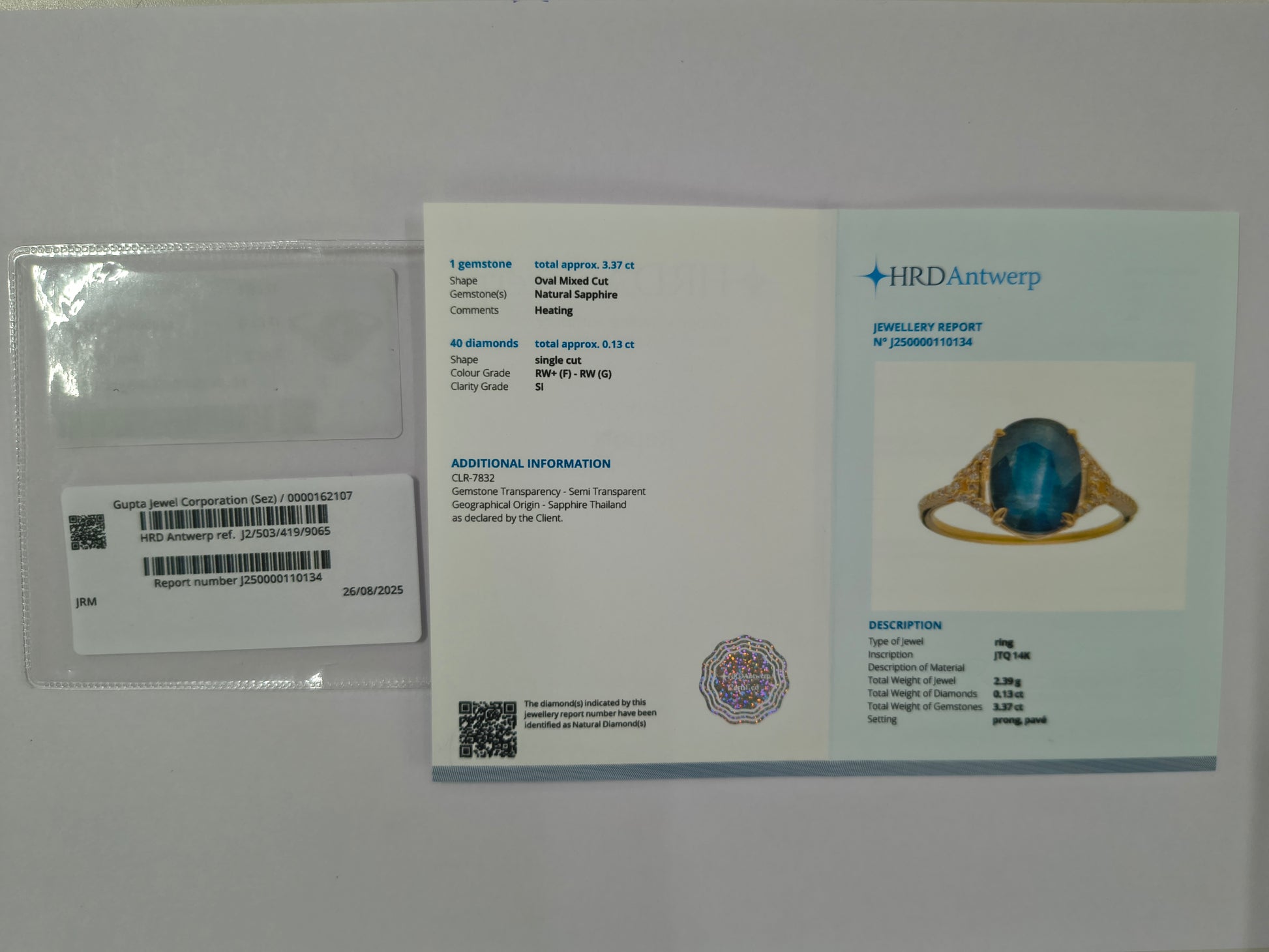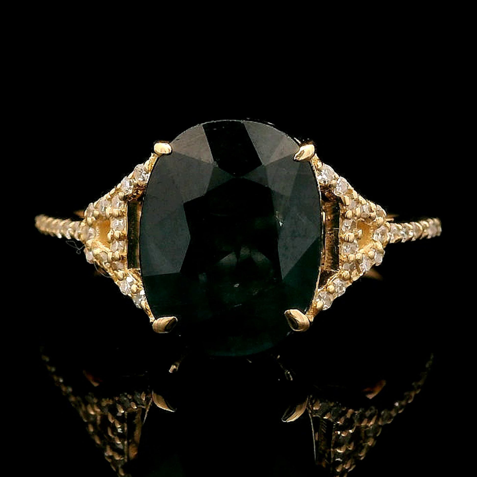 3.50 Ct Oval Mixed Cut Natural Sapphire 14K Gold Ring