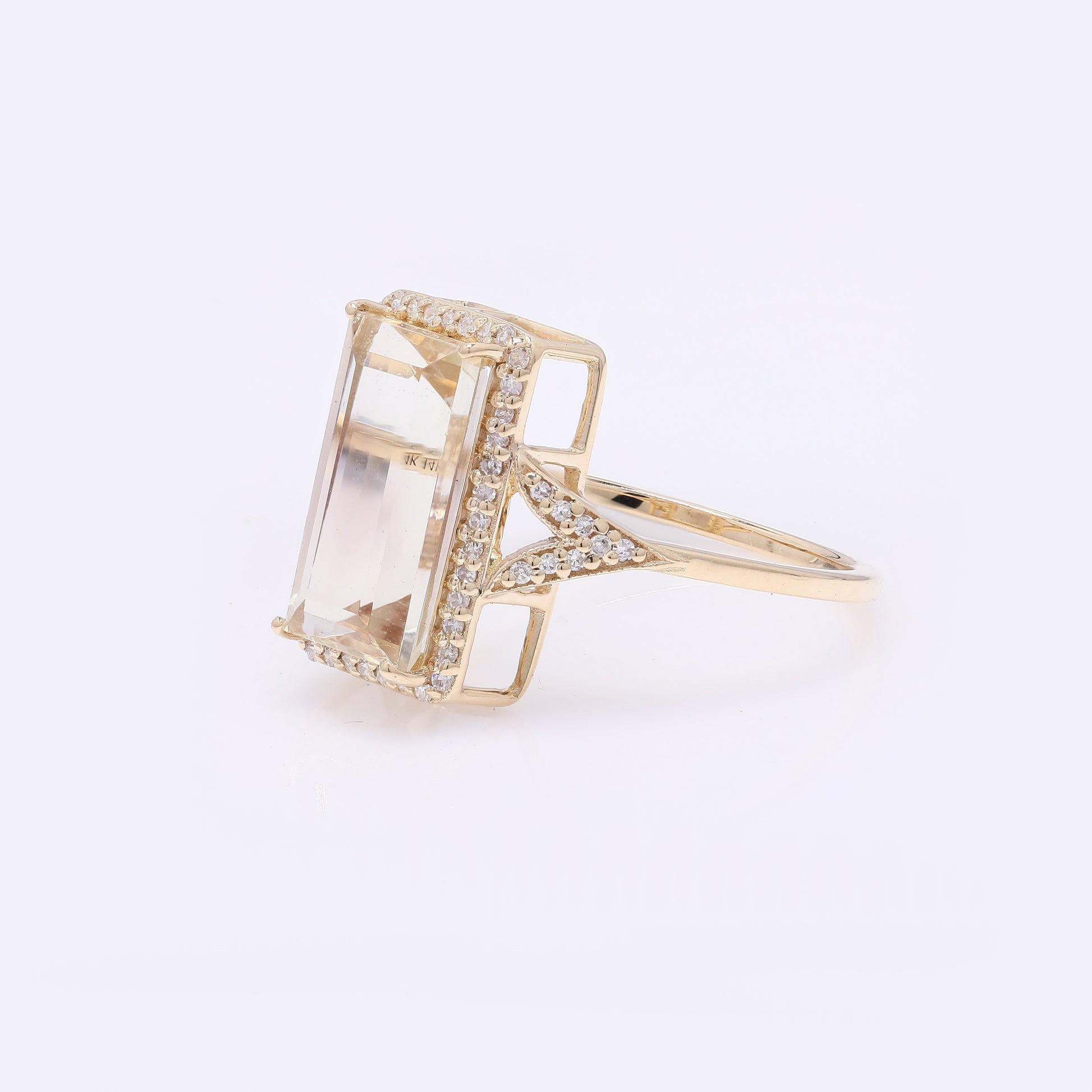 3.50 Ct Rectangular Step Cut Natural Plagioclase Feldspar Sunstone 14K Gold Ring