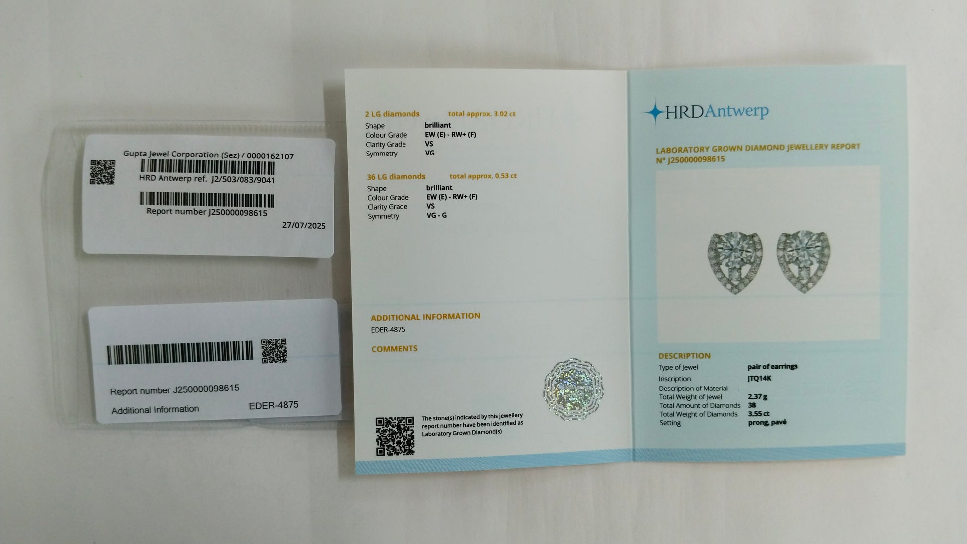 3.55-Carat Lab-Grown Diamond Round Brilliant Earrings - HRD Certified