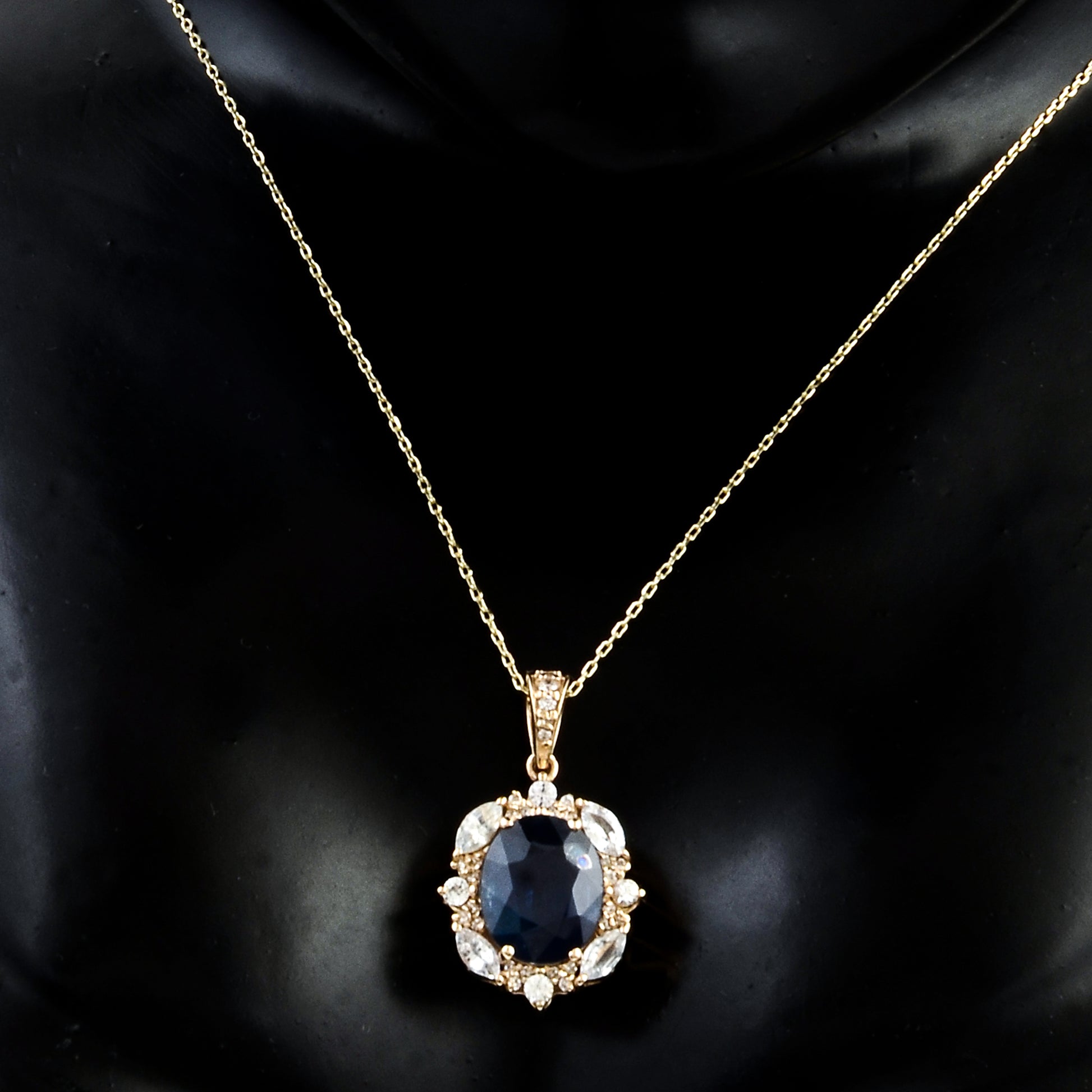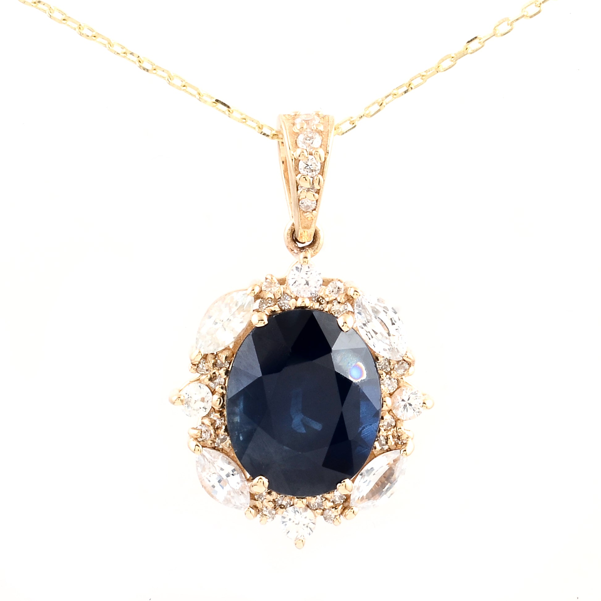 3.55 Ct Oval Mixed Cut Sapphire 14K Gold Pendant
