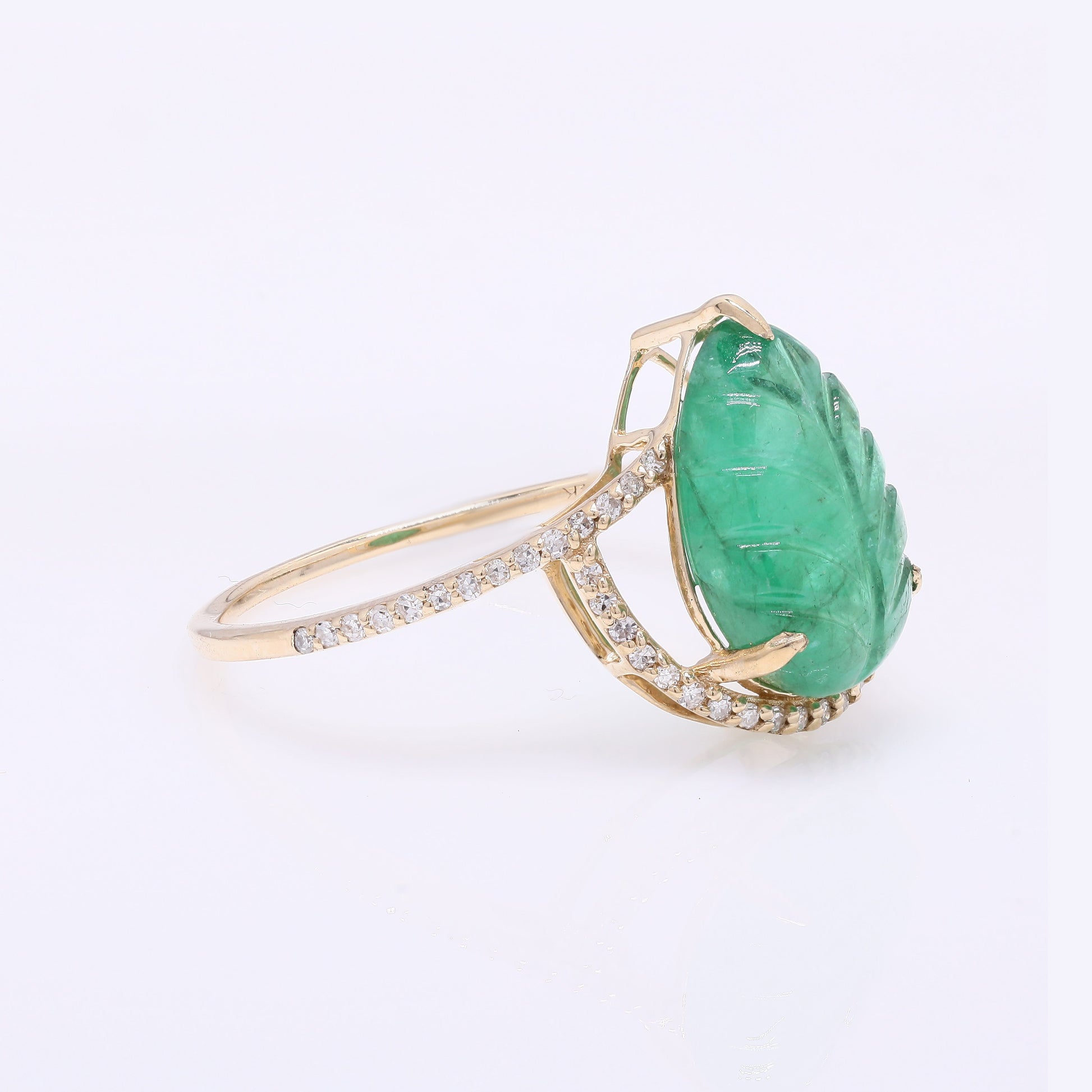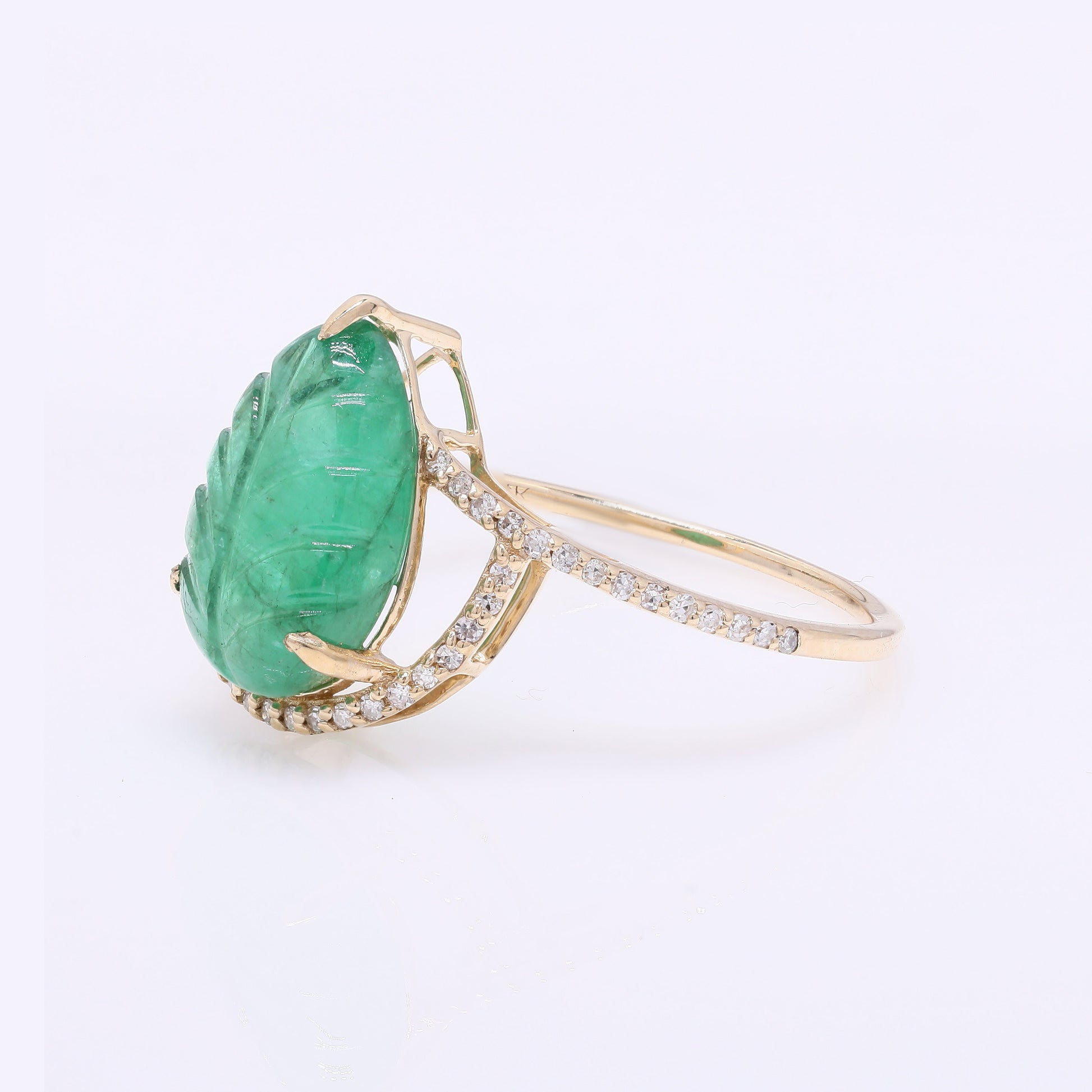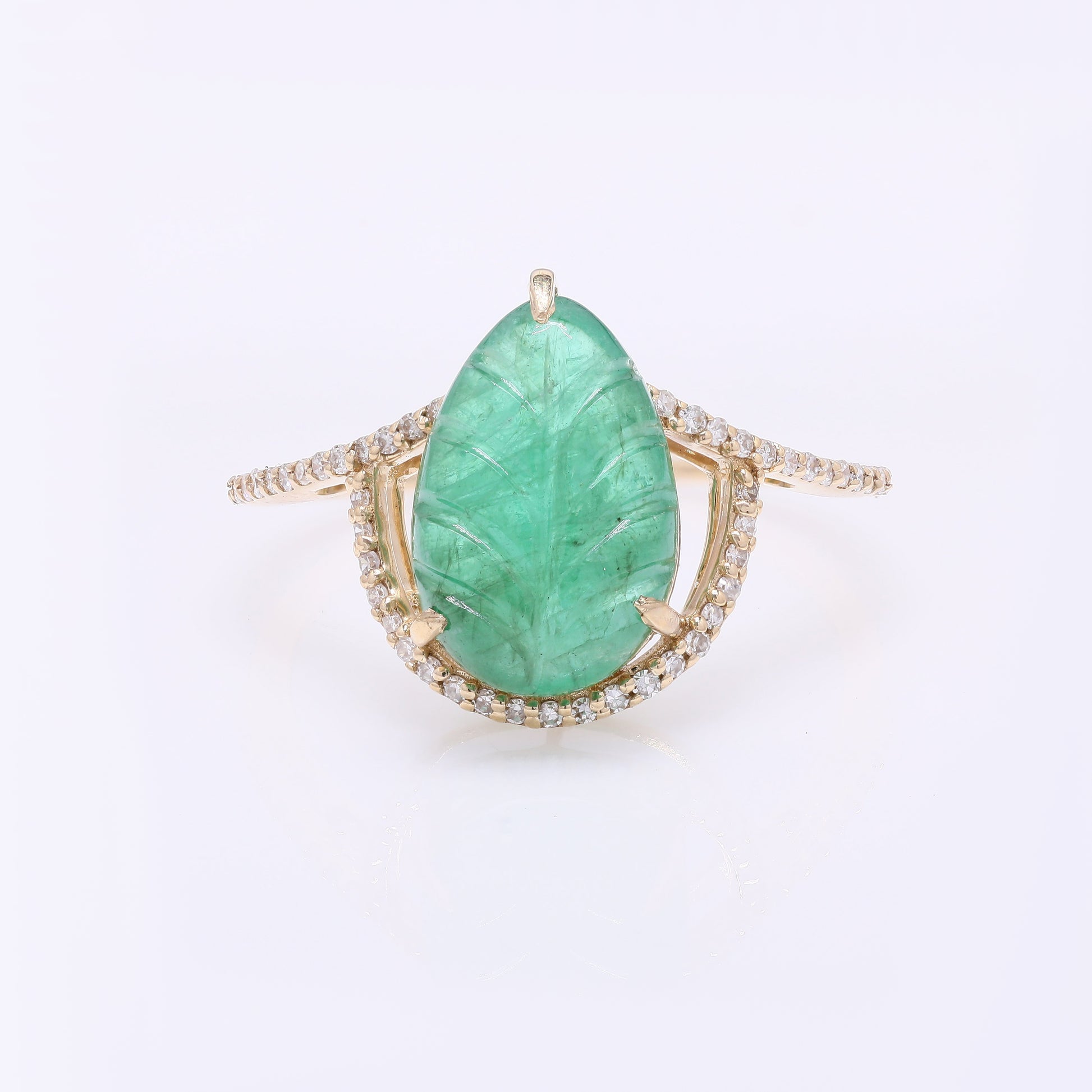 3.56 Ct Pear Carving Natural Beryl Emerald 14K Gold Ring