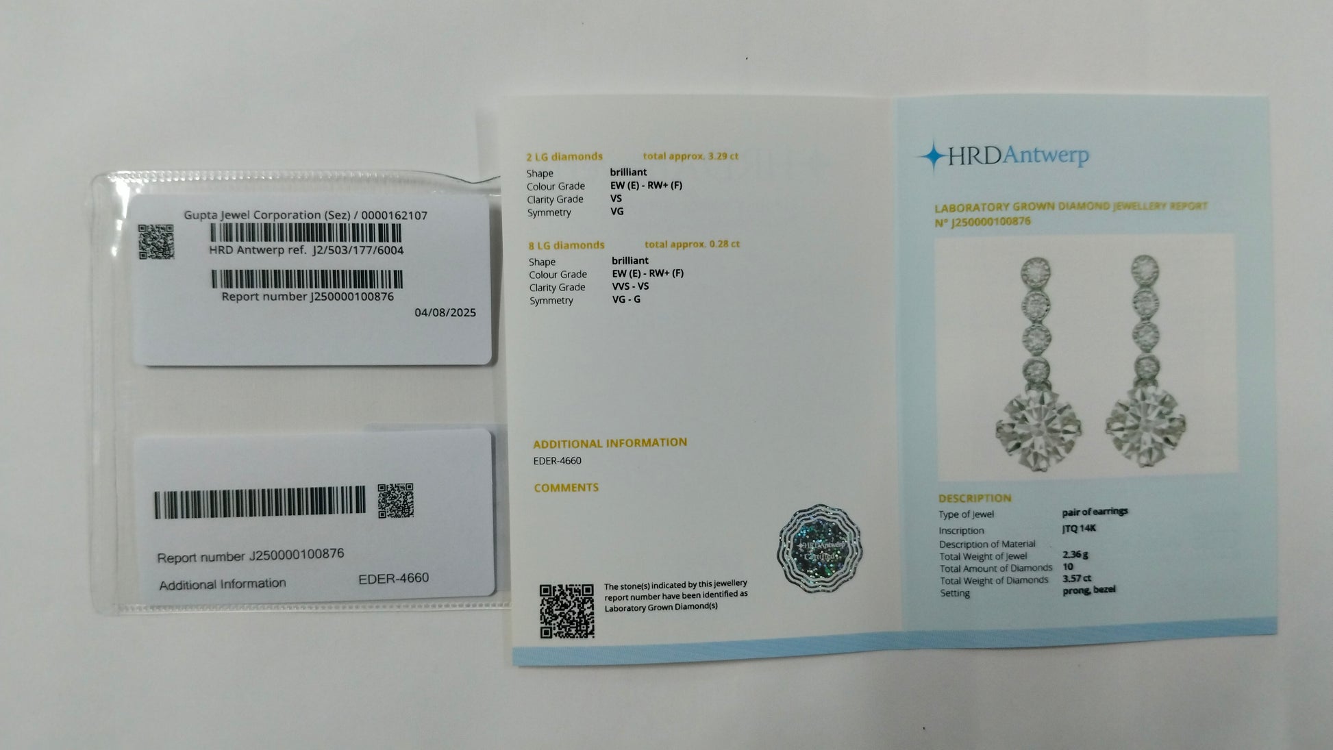 3.57-Carat Lab-Grown Diamond Round Cut Brilliant Earrings ? HRD Certified