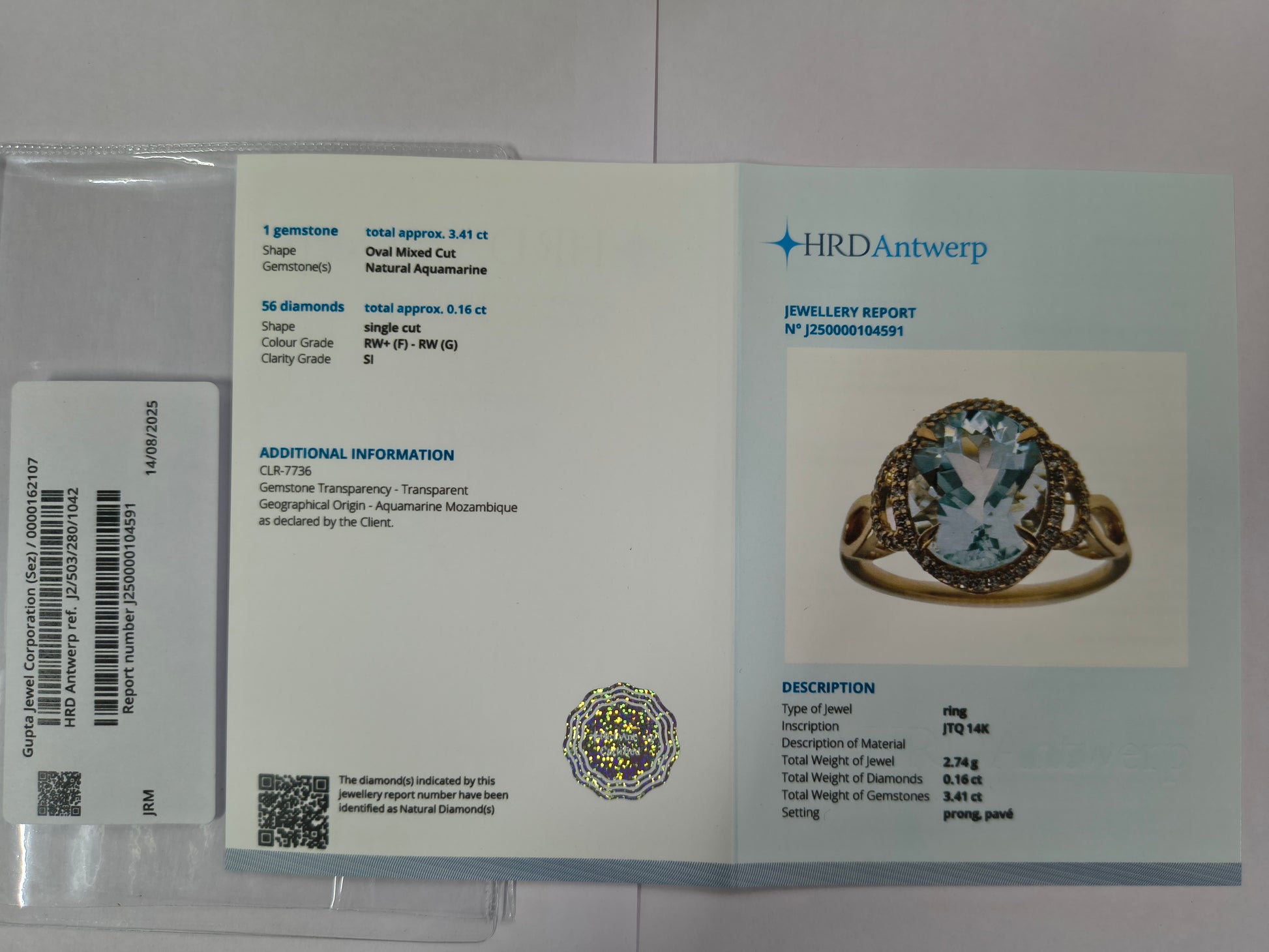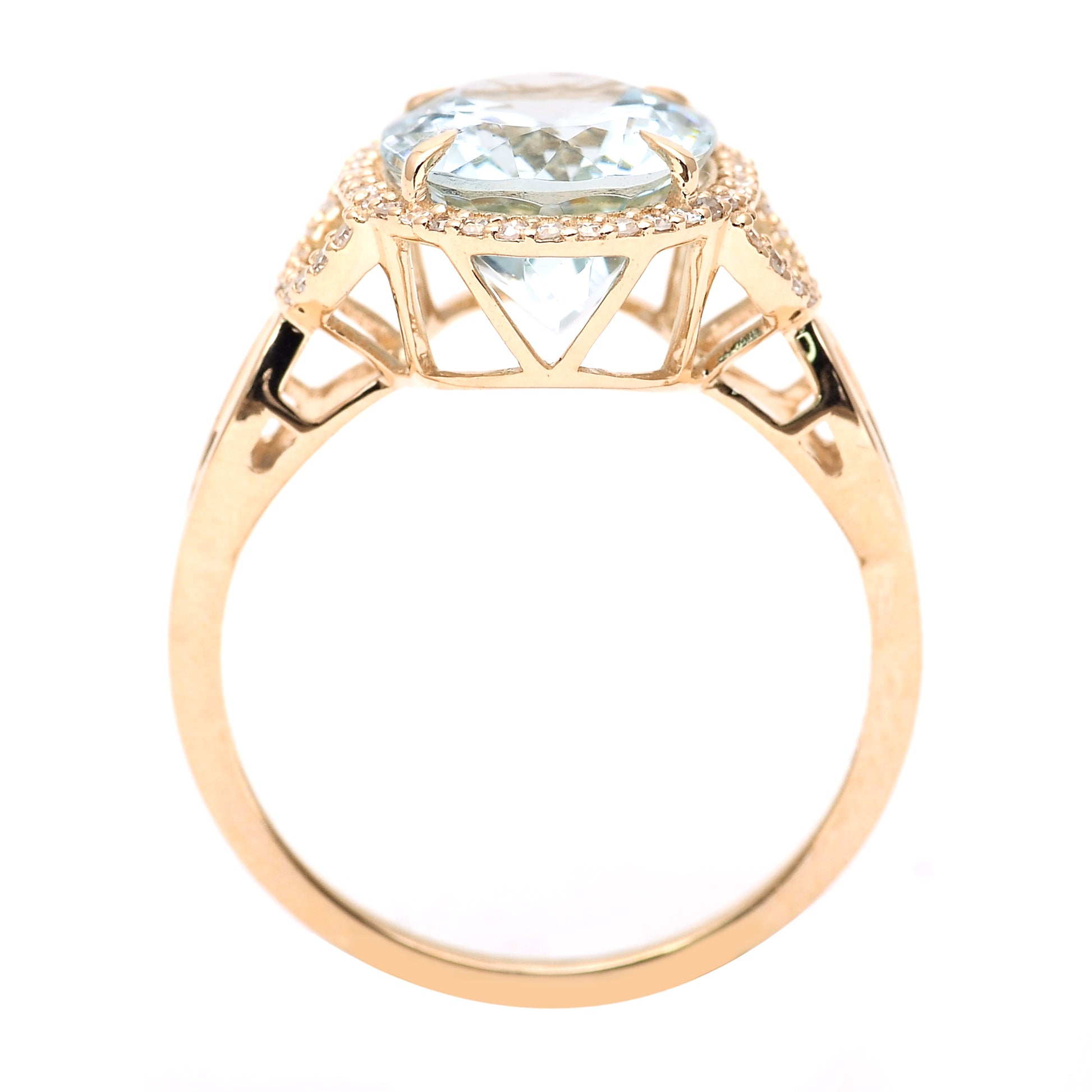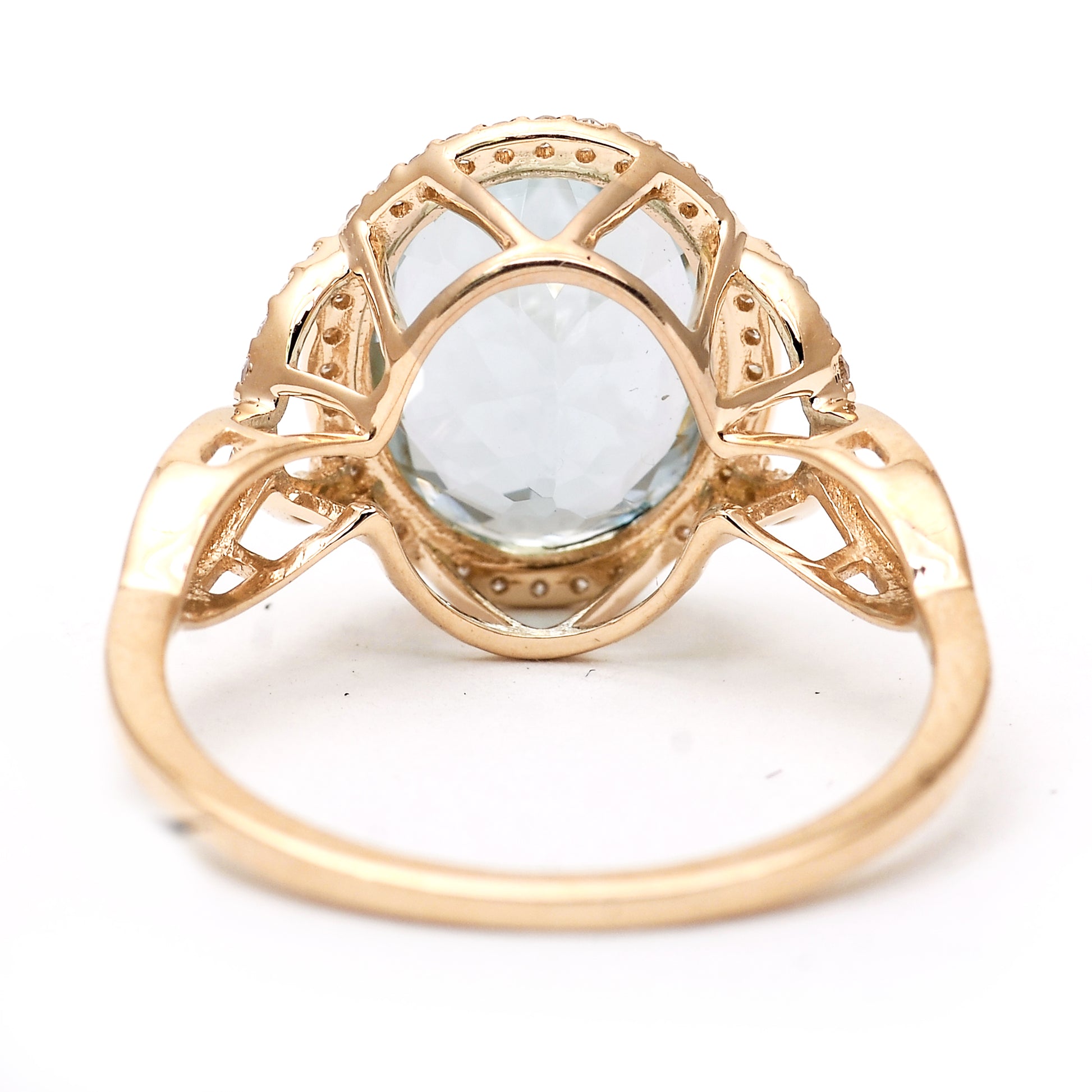 3.57 Ct Oval Mixed Cut Natural Aquamarine 14K Gold Ring