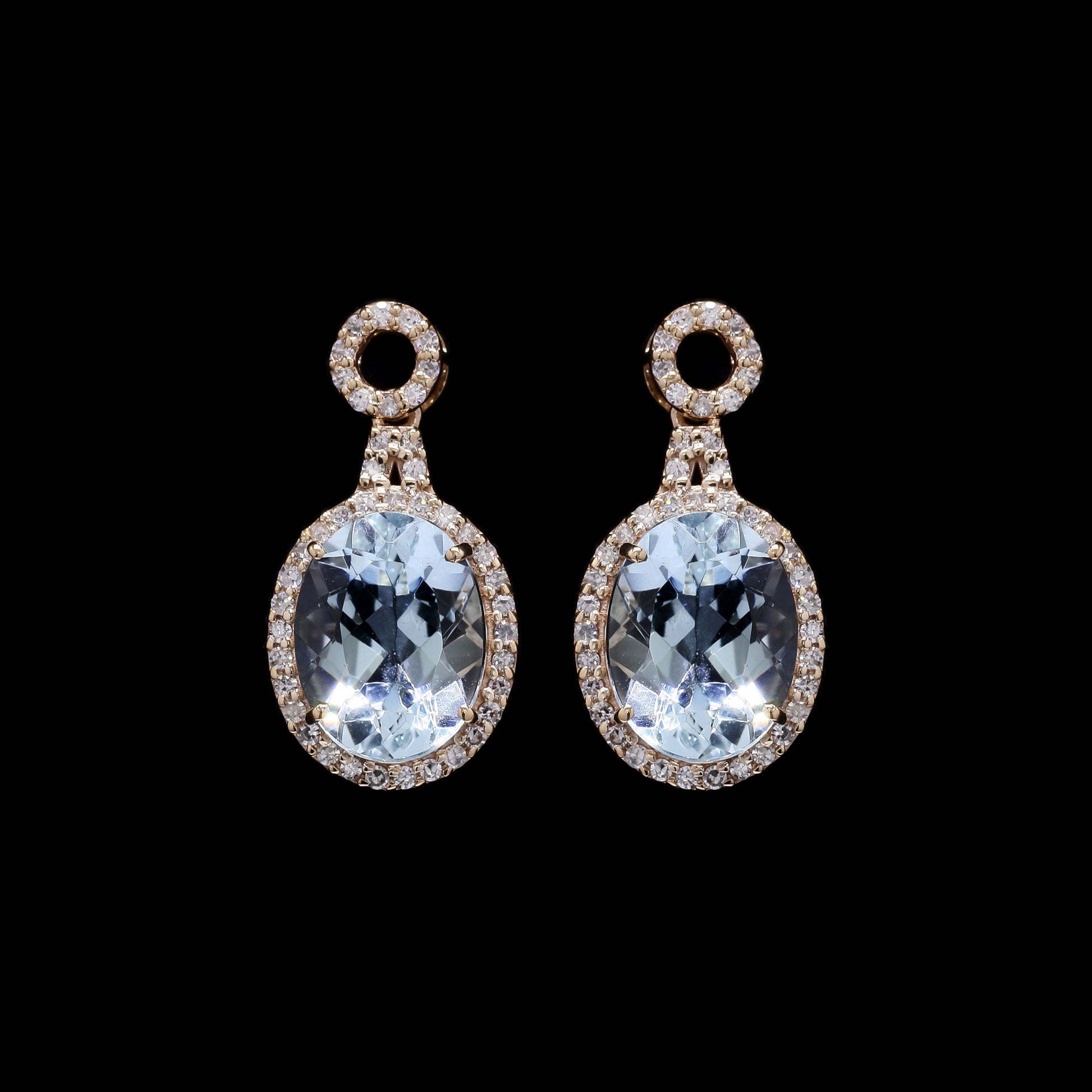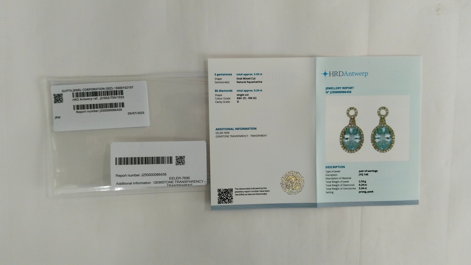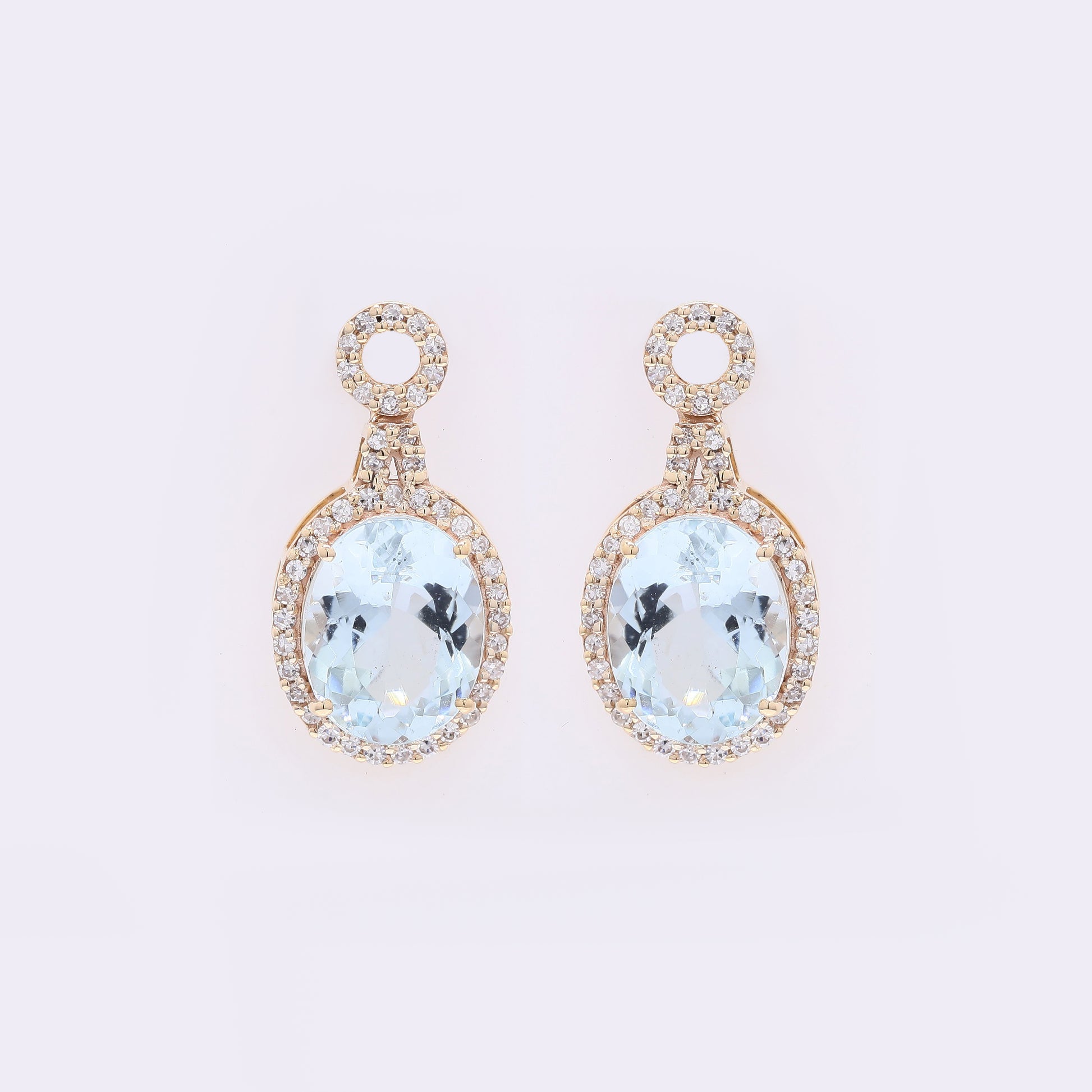 3.58 Ct Oval Mixed Cut Natural Aquamarine 14K Gold Earrings