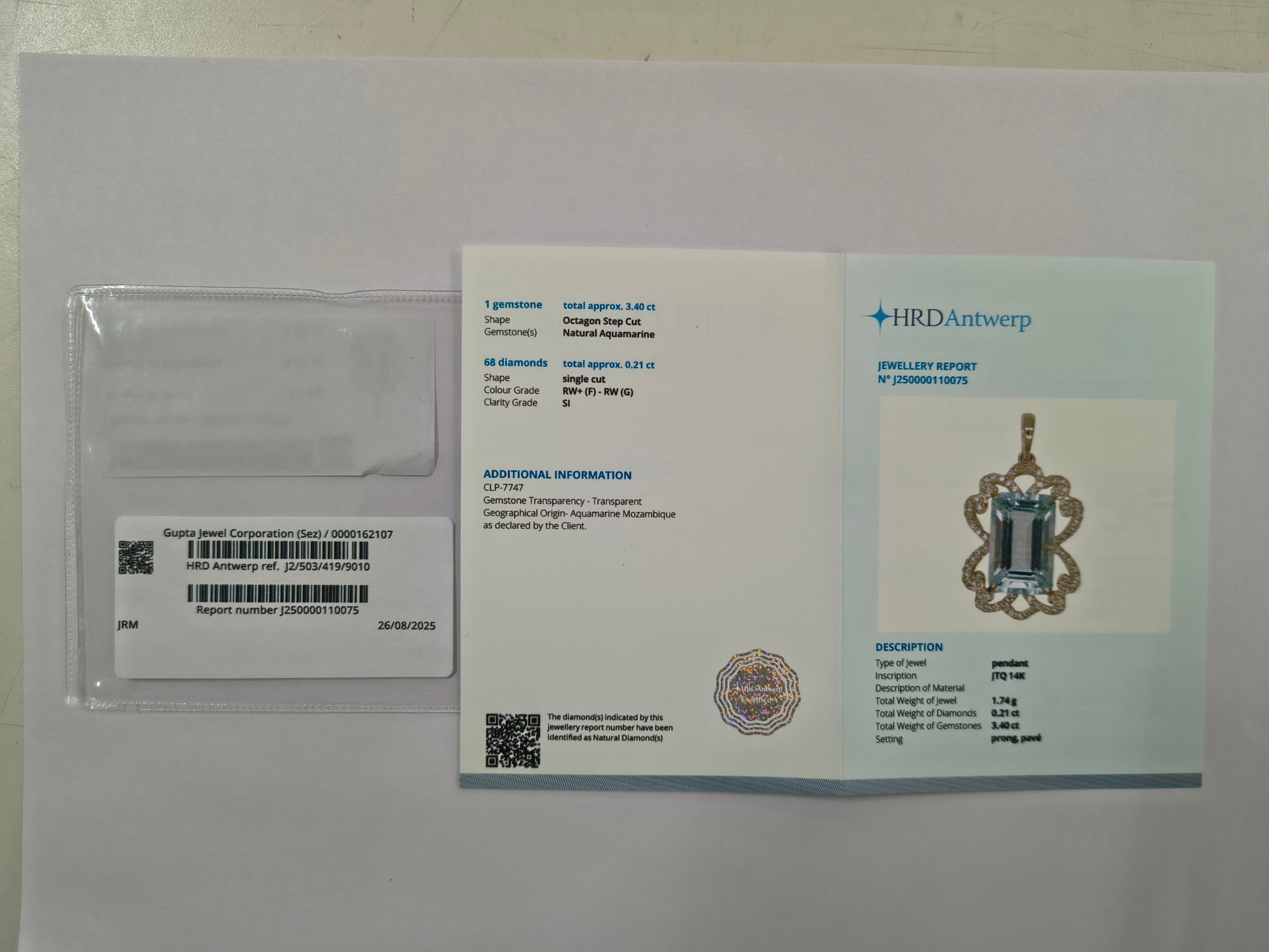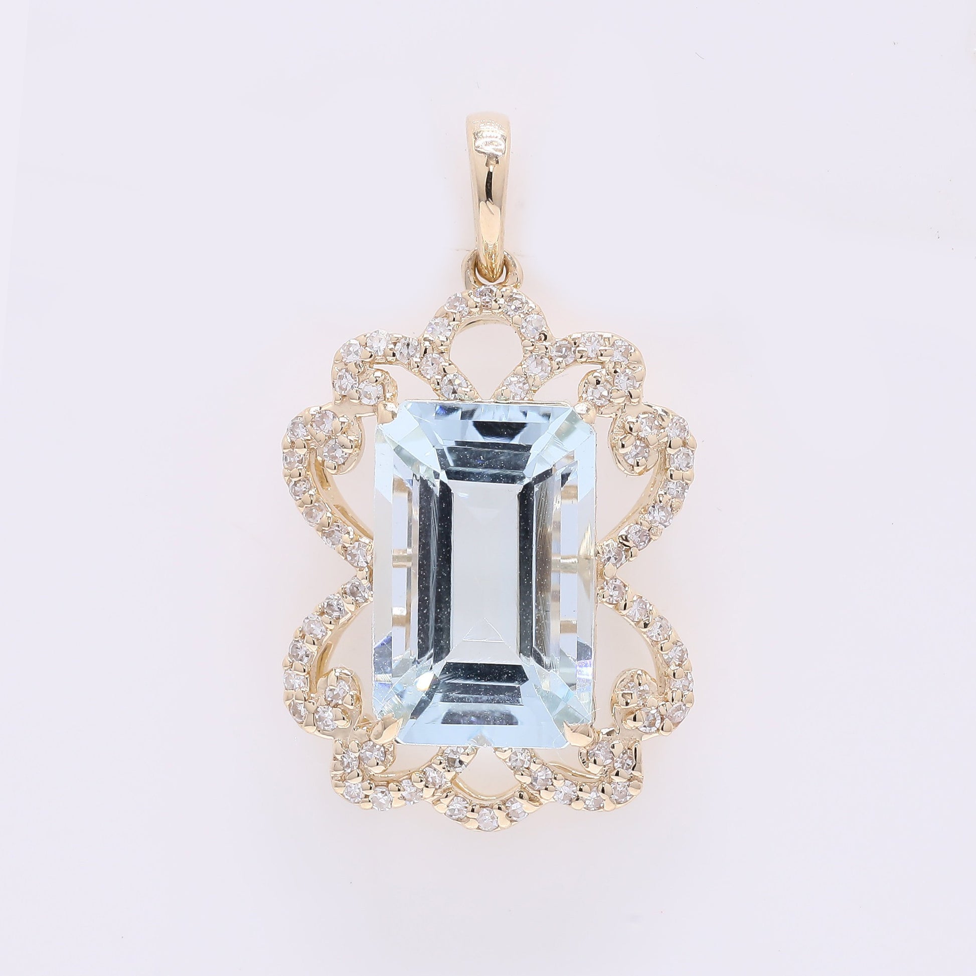 3.61 Ct Octagon Step Cut Natural Aquamarine 14K Gold Pendant
