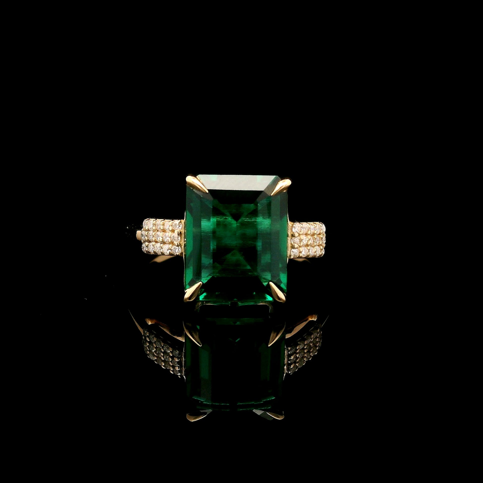 3.63 Ct Emerald Cut Lab Grown Emerald 14K Gold Ring