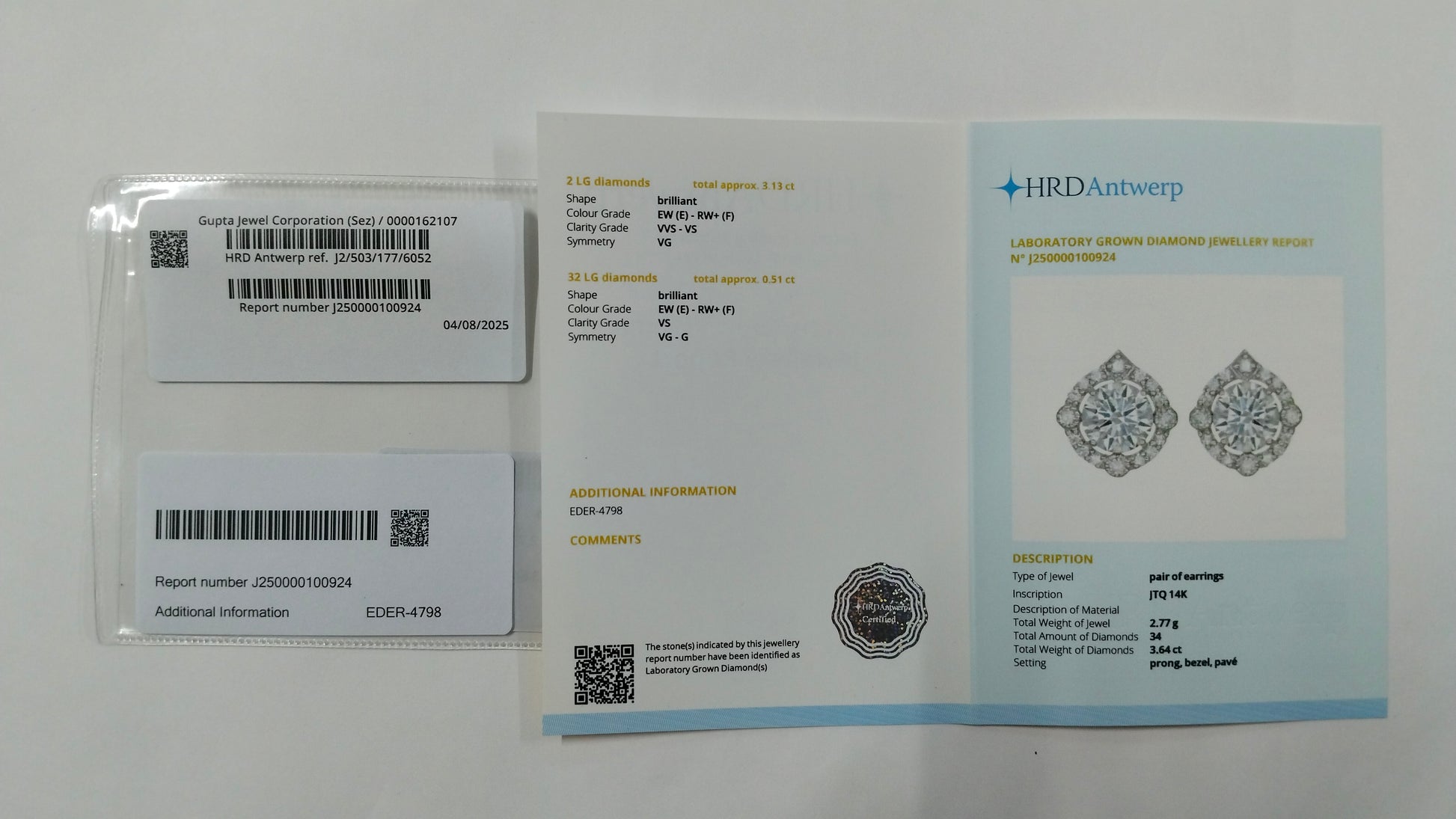 3.64-Carat Lab-Grown Diamond Round Cut Brilliant Earrings ? HRD Certified