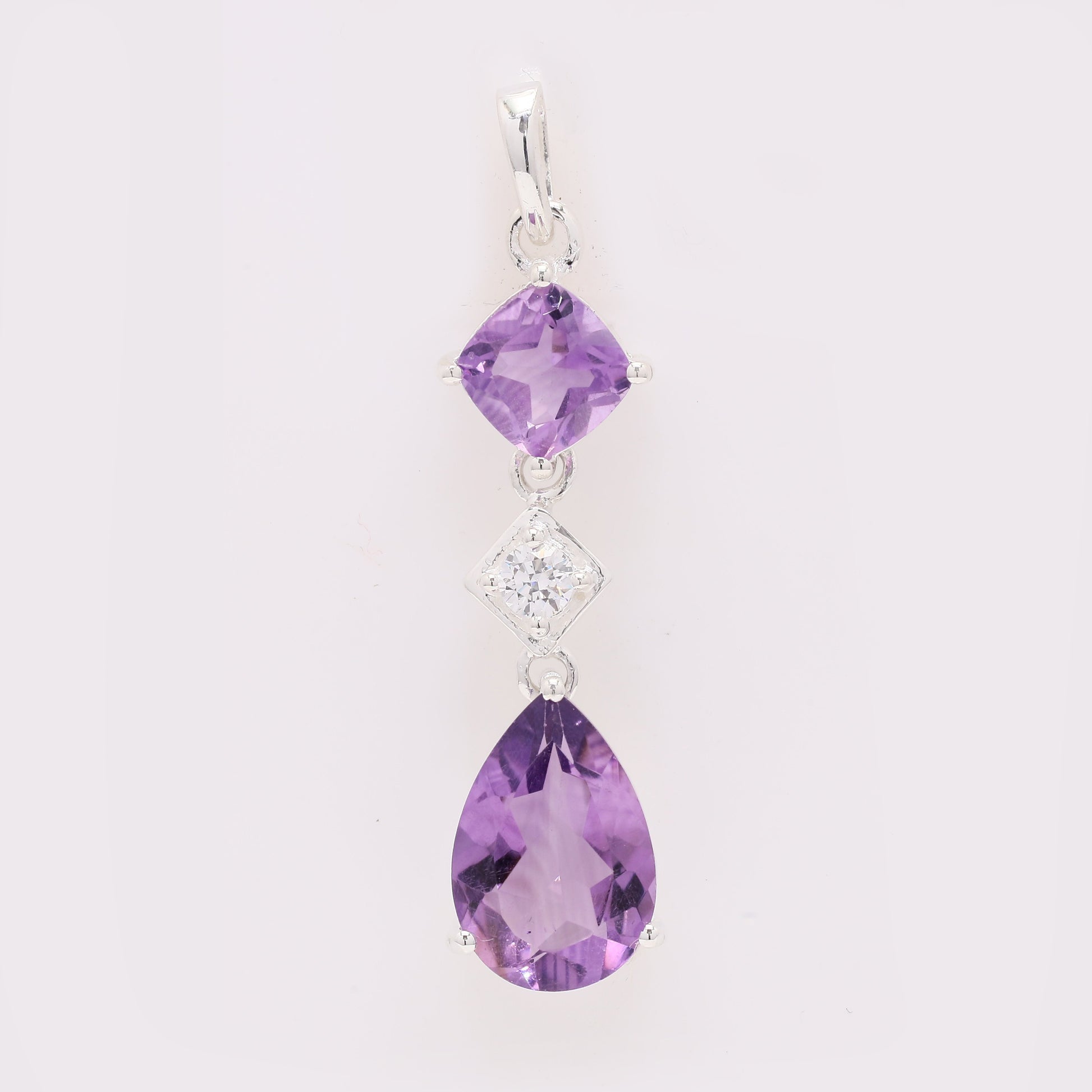 3.65 Ct Pear Amethyst 925 Silver Pendant