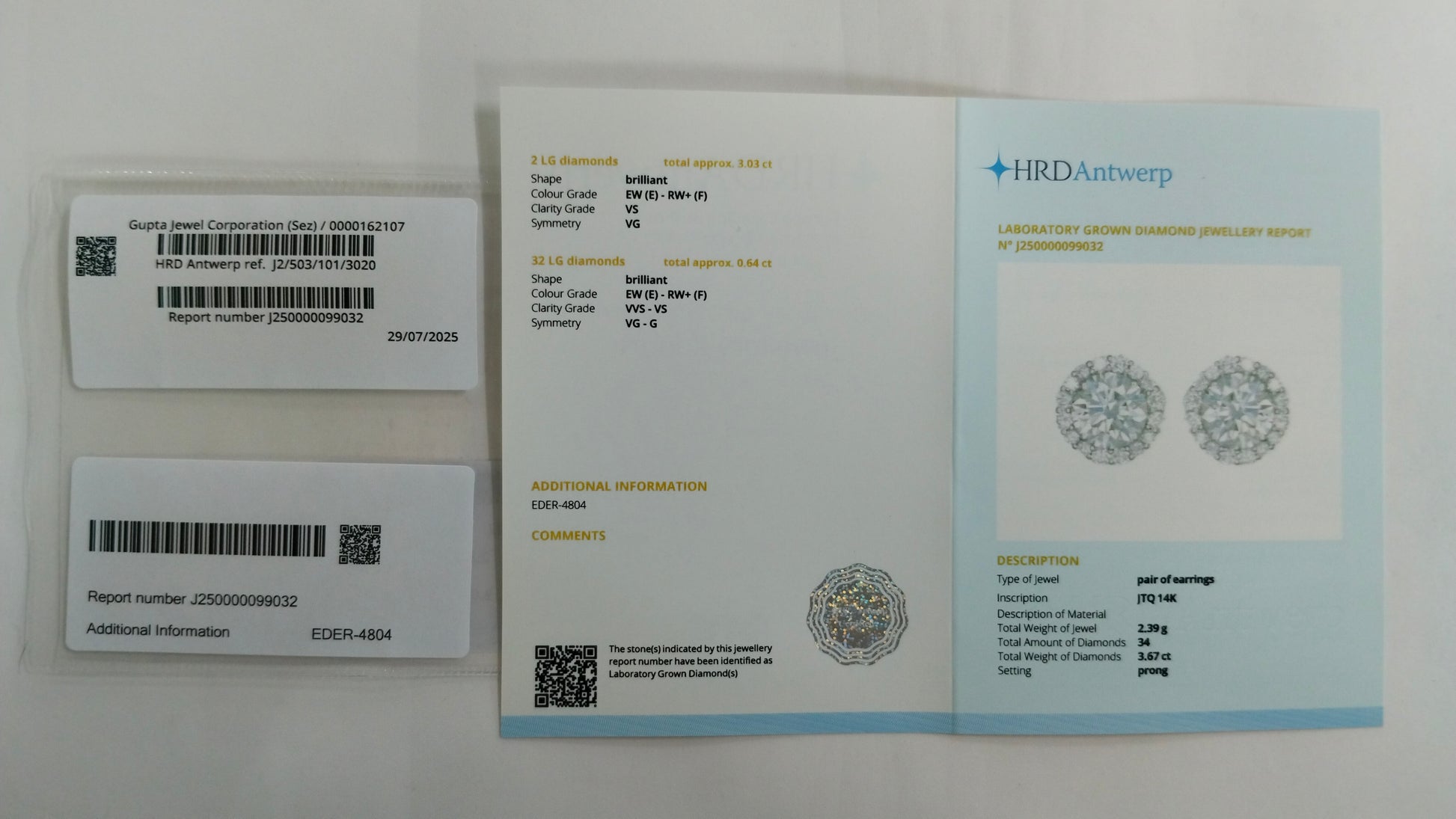 3.67-Carat Lab-Grown Diamond Round Brilliant Earrings - HRD Certified