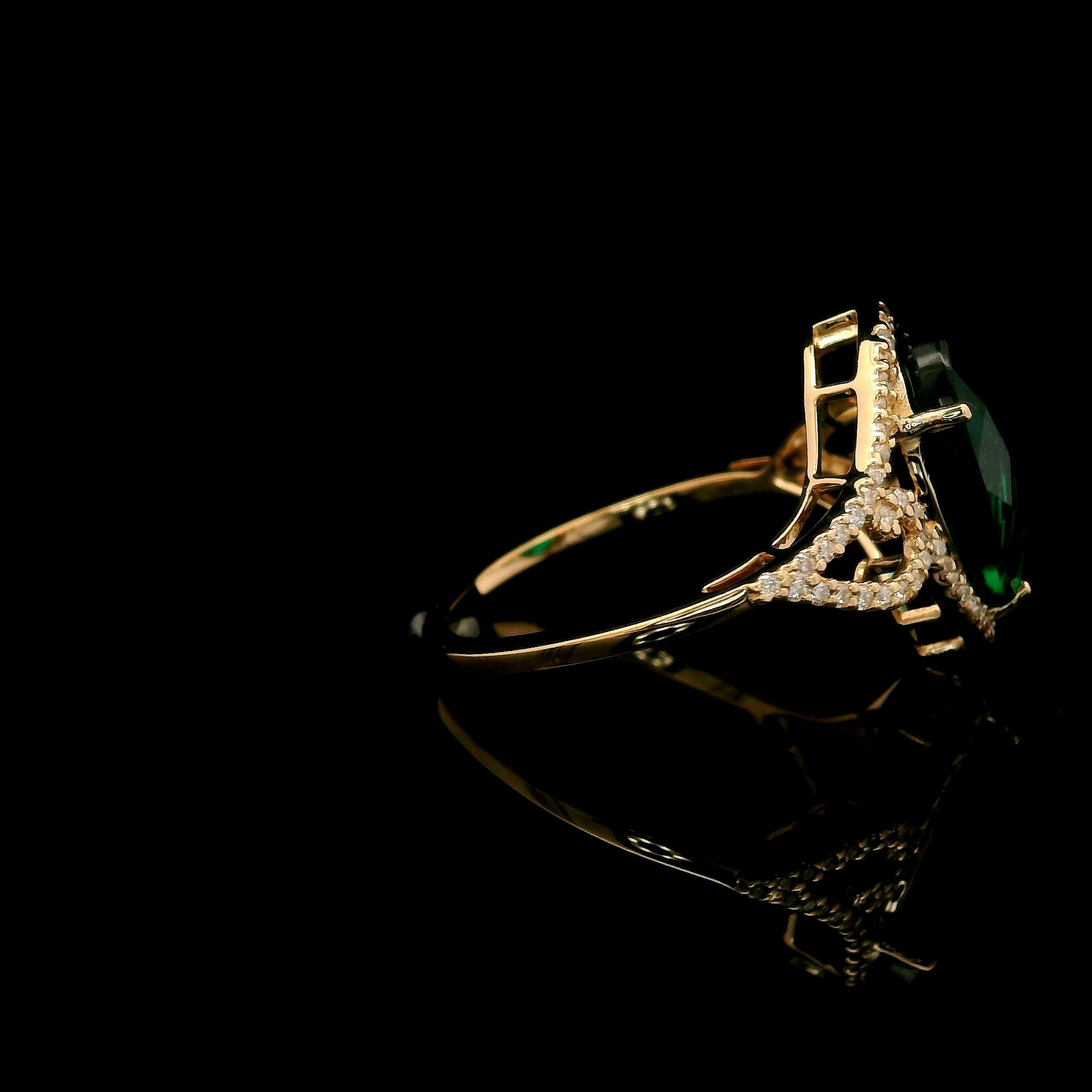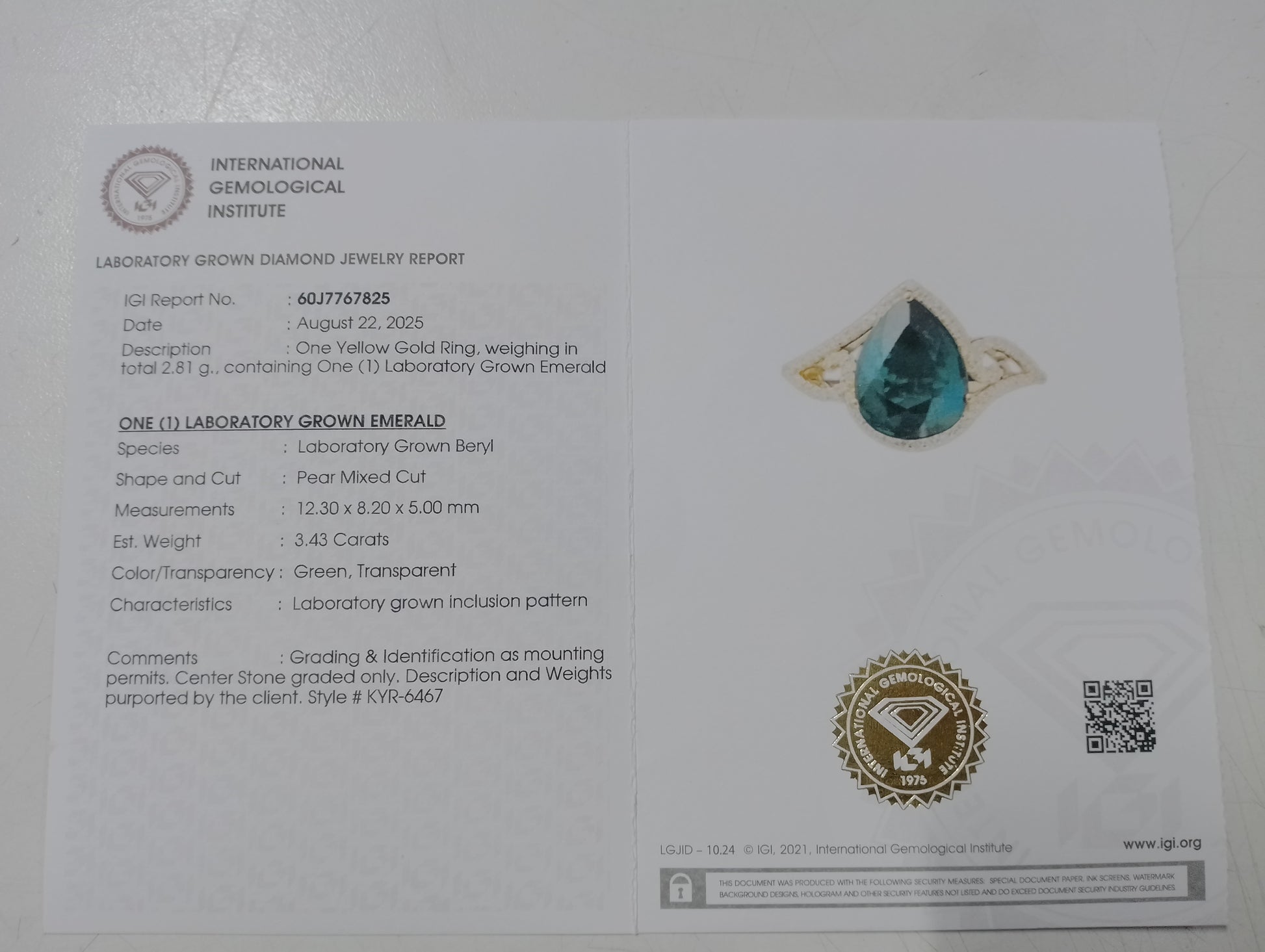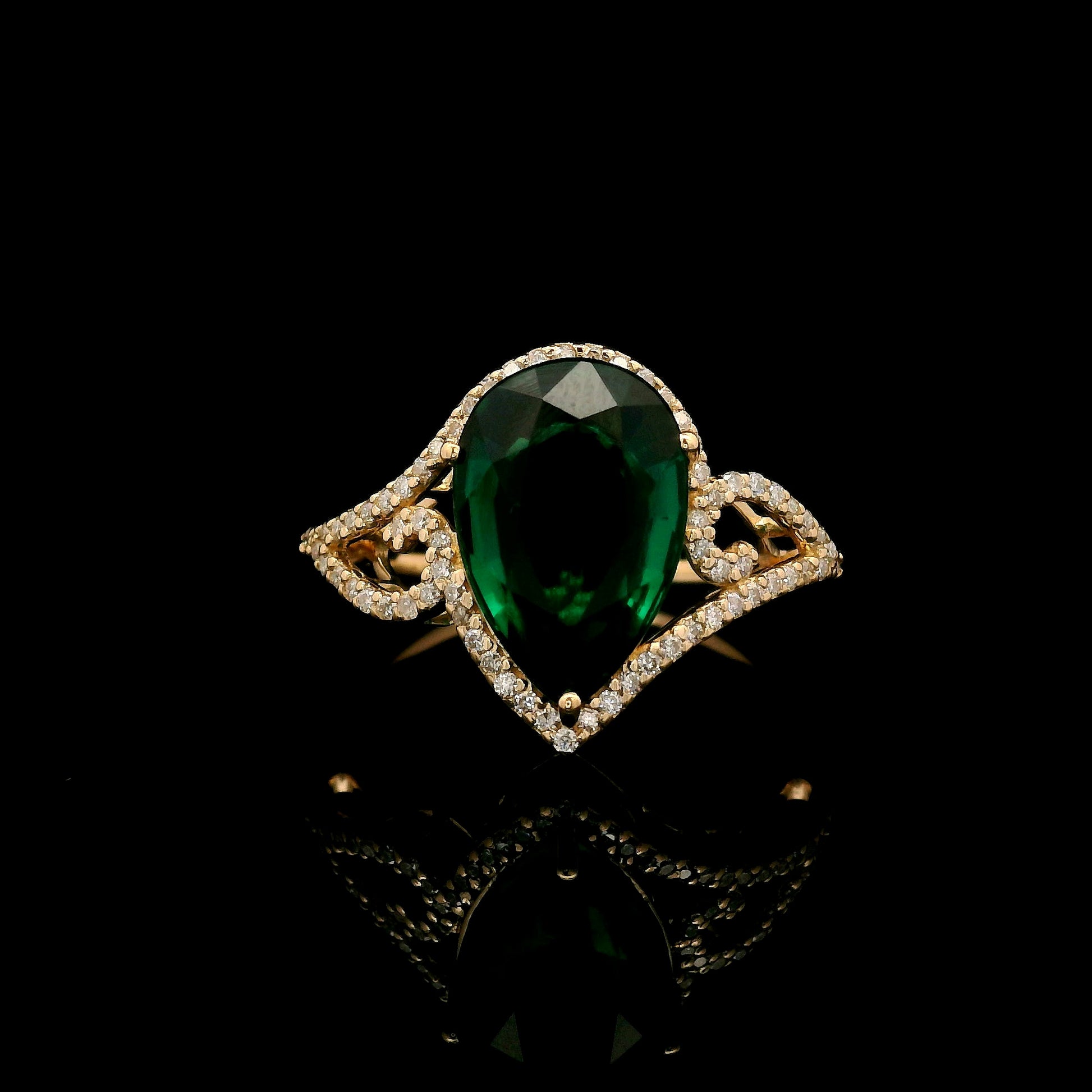 3.67 Ct Pear Mixed Cut Lab Grown Emerald 14K Gold Ring