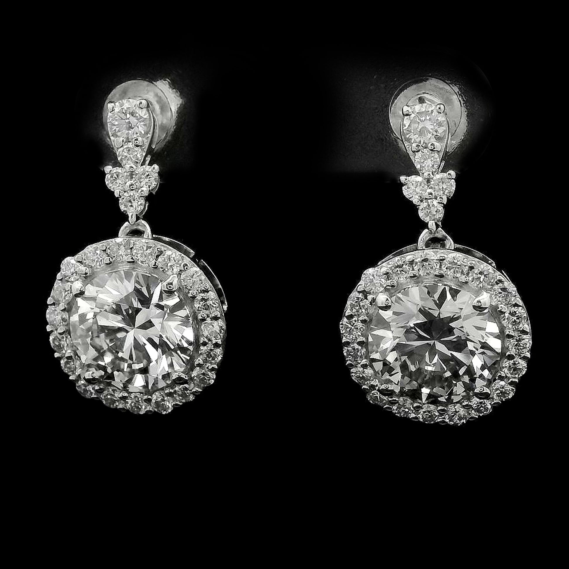 3.68-Carat Lab-Grown Diamond Round Cut Brilliant Earrings