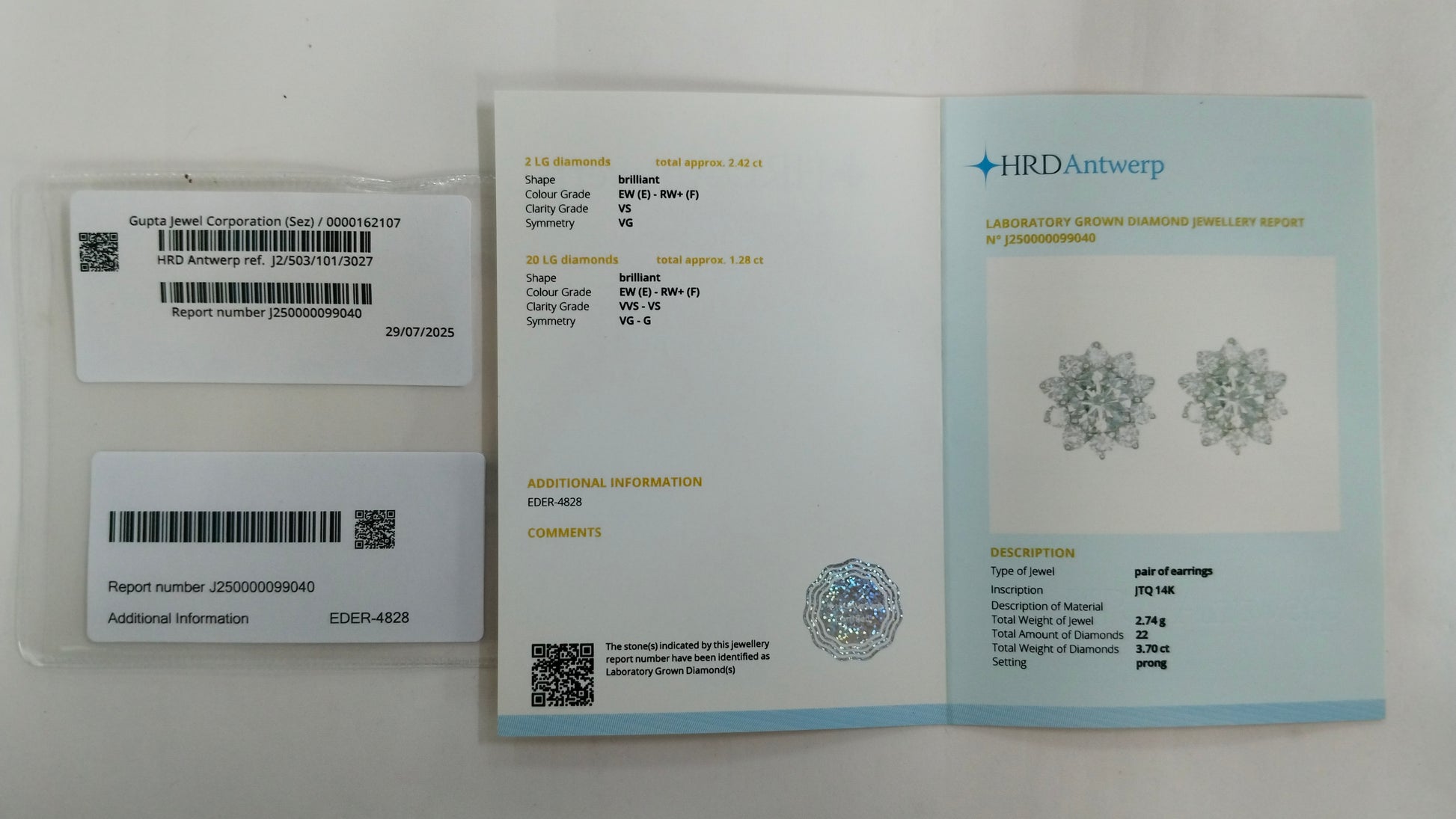 3.70-Carat Lab-Grown Diamond Round Brilliant Earrings - HRD Certified