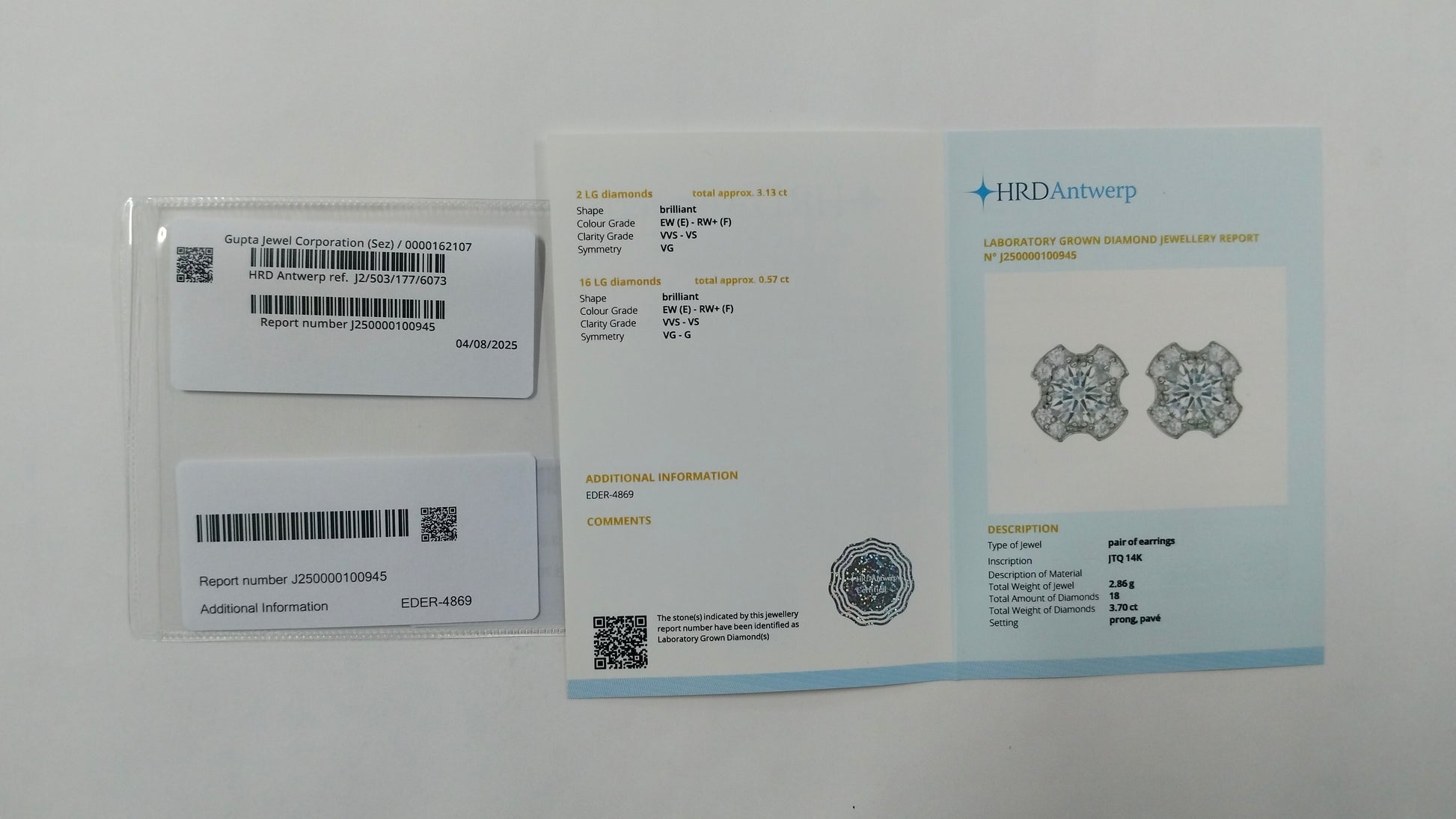 3.70-Carat Lab-Grown Diamond Round Cut Brilliant Earrings ? HRD Certified