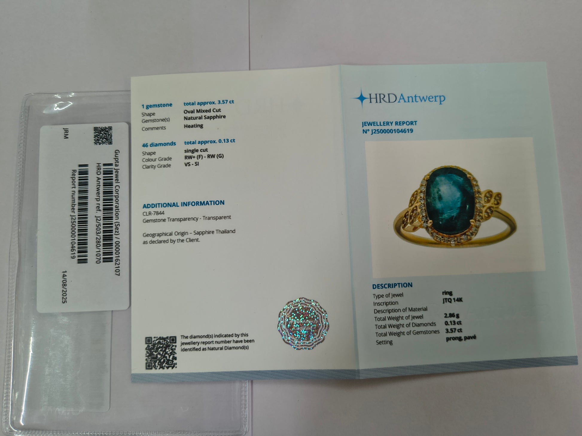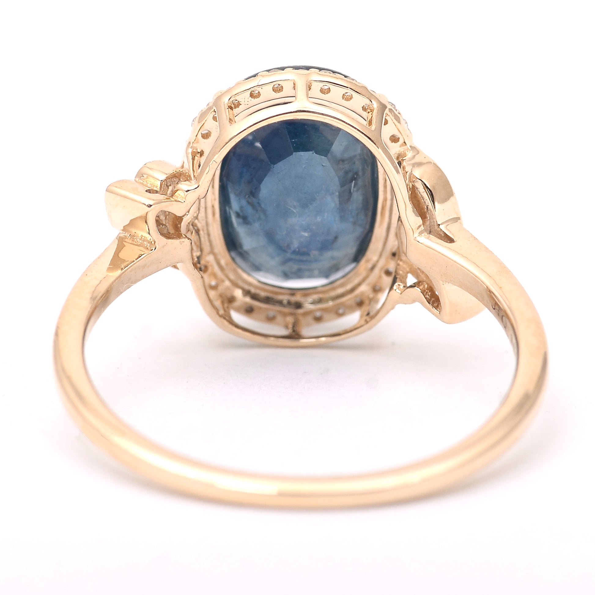 3.70 Ct Oval Mixed Cut Natural Sapphire 14K Gold Ring