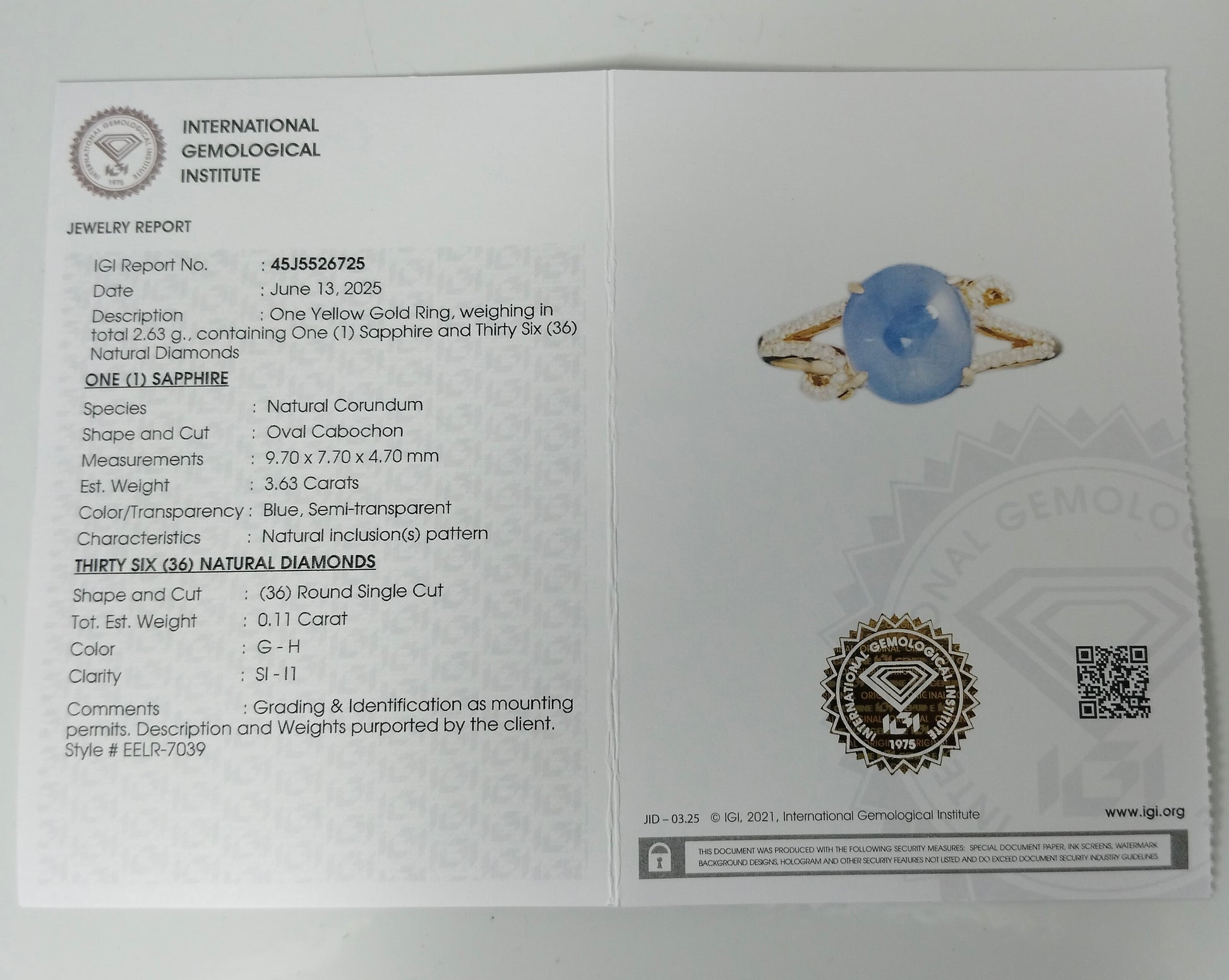 - Lab Name: International Gemological Institute (IGI)