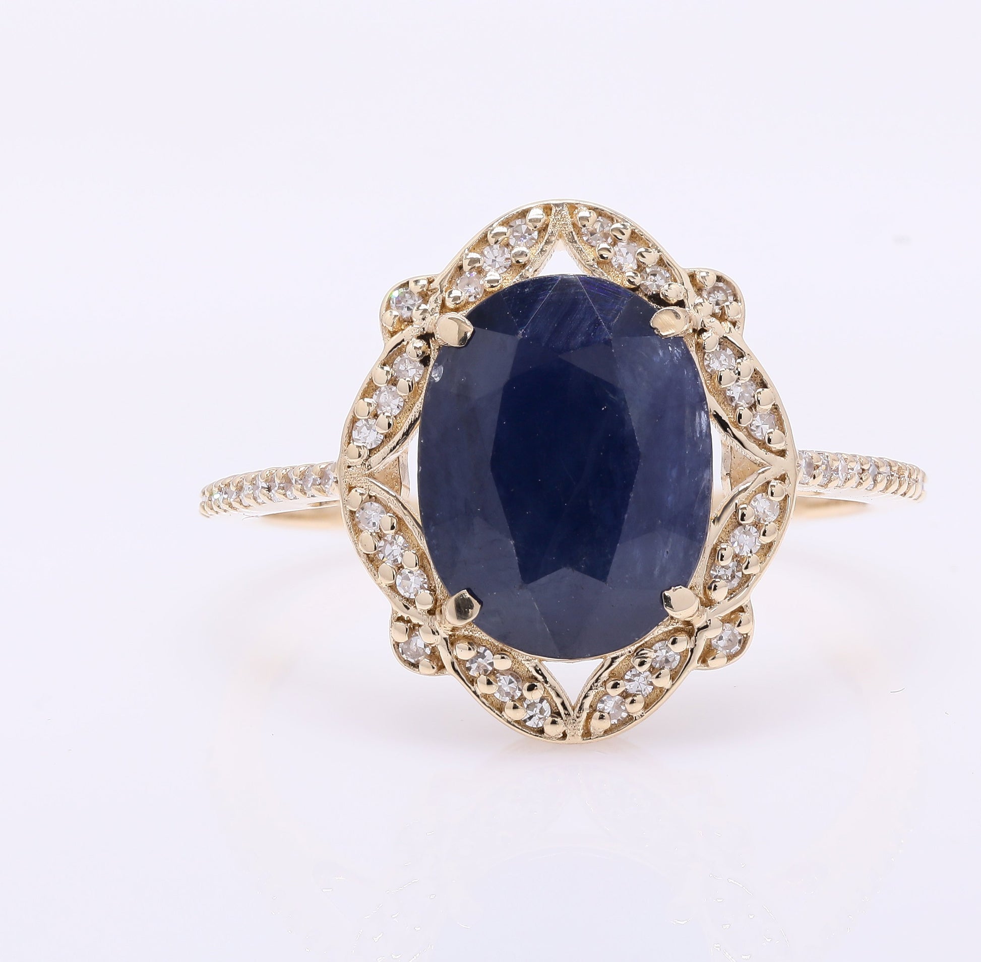 3.74 Ct Oval Mixed Cut Natural Sapphire 14K Gold Ring