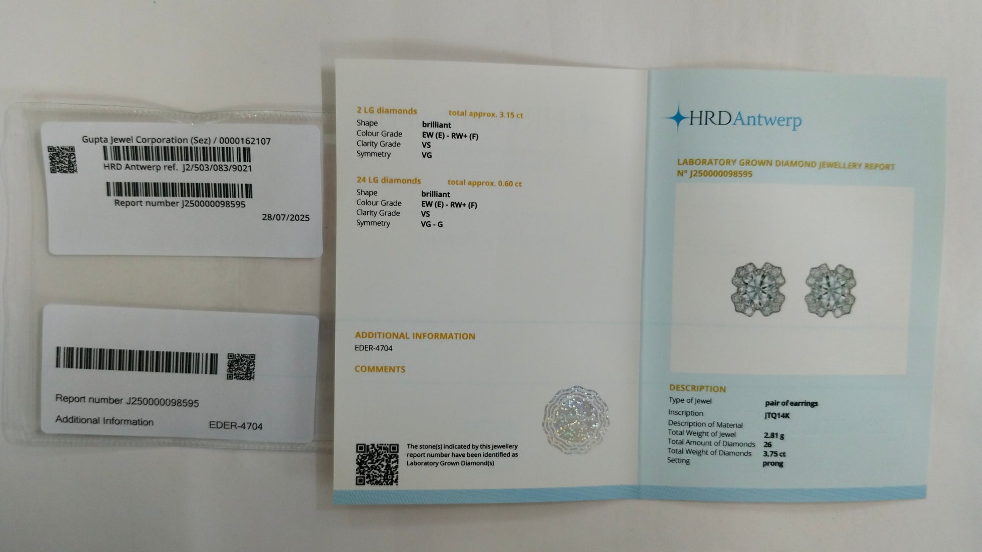3.75-Carat Lab-Grown Diamond Round Brilliant Earrings - HRD Certified